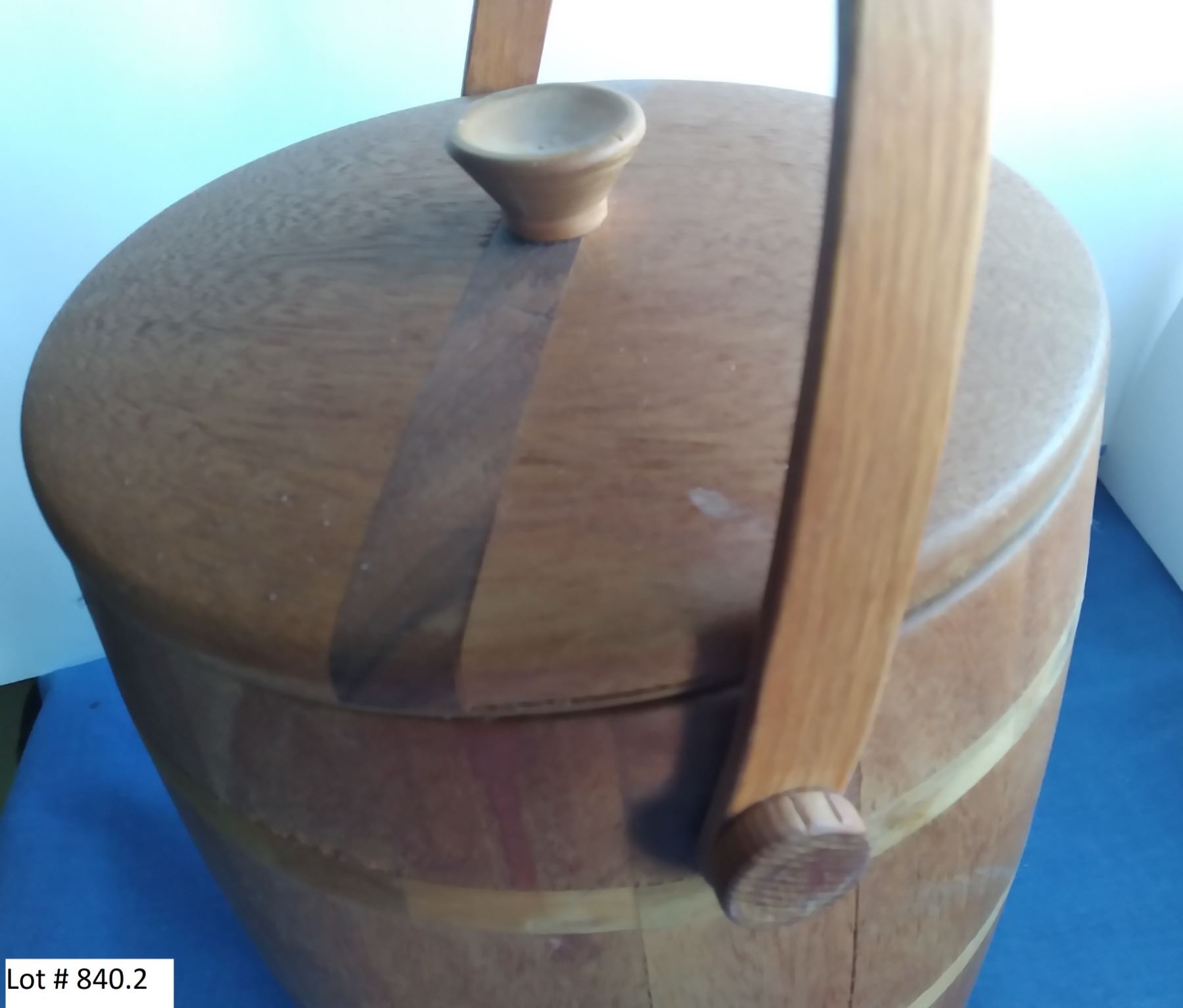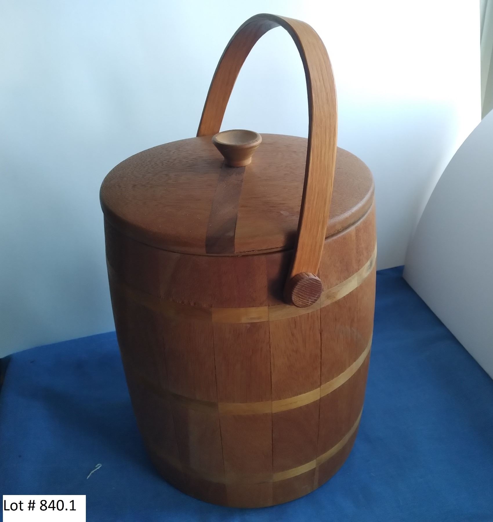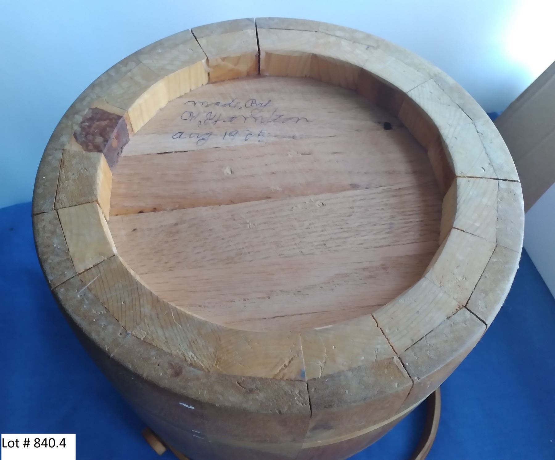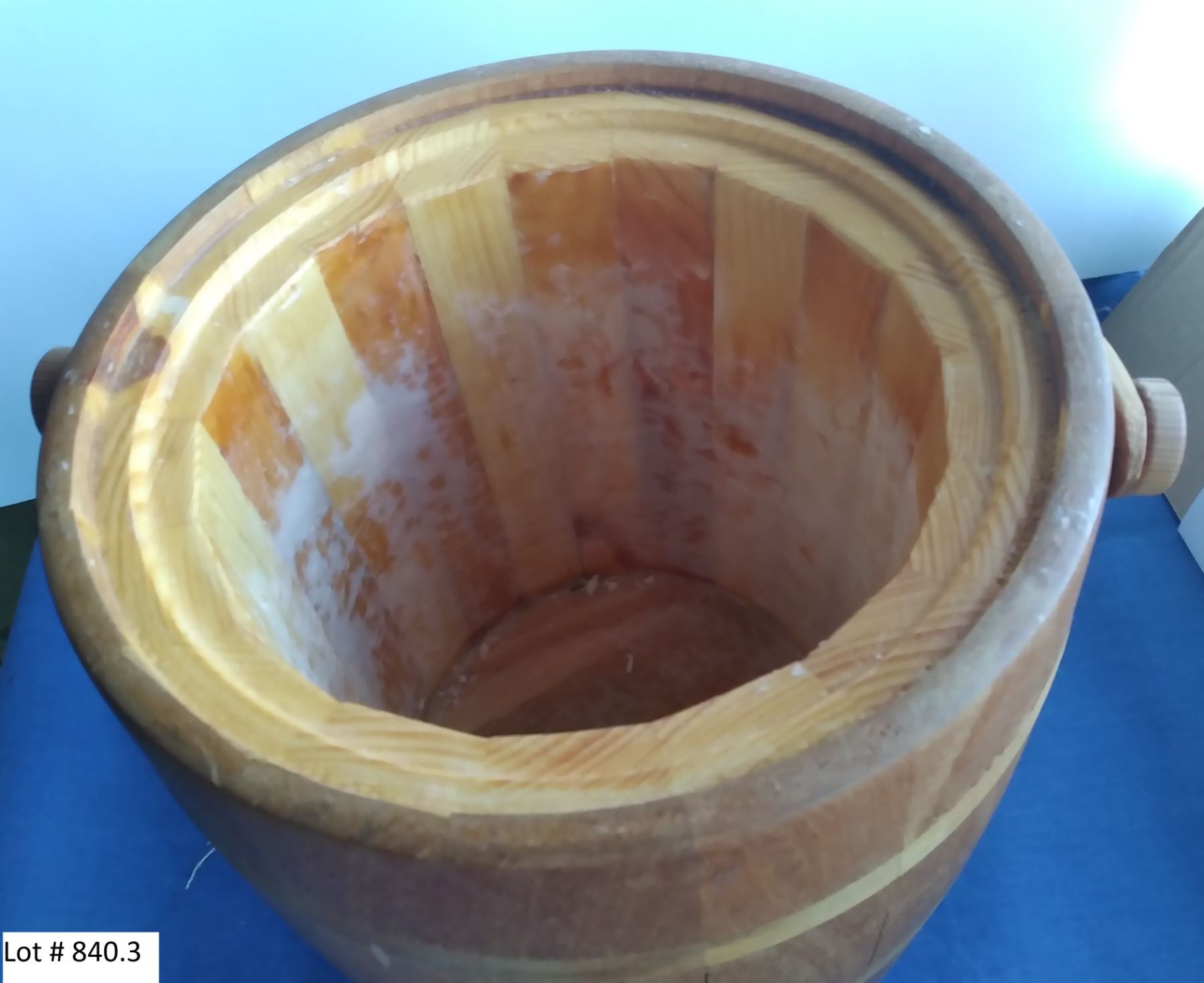 Folk Art all-wood handmade lard pail - signed on bottom, 9 inches diameter, 12 inches tall