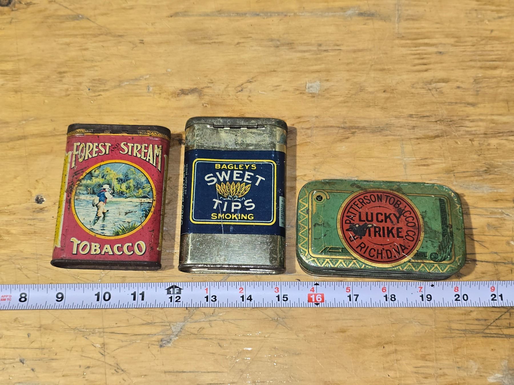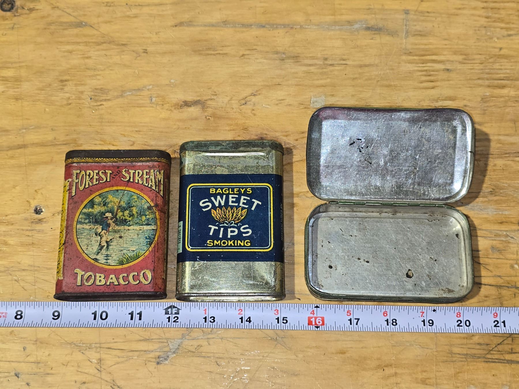 Forest and Stream, Bagley’s and Lucky Strike Pocket Tobacco Tins