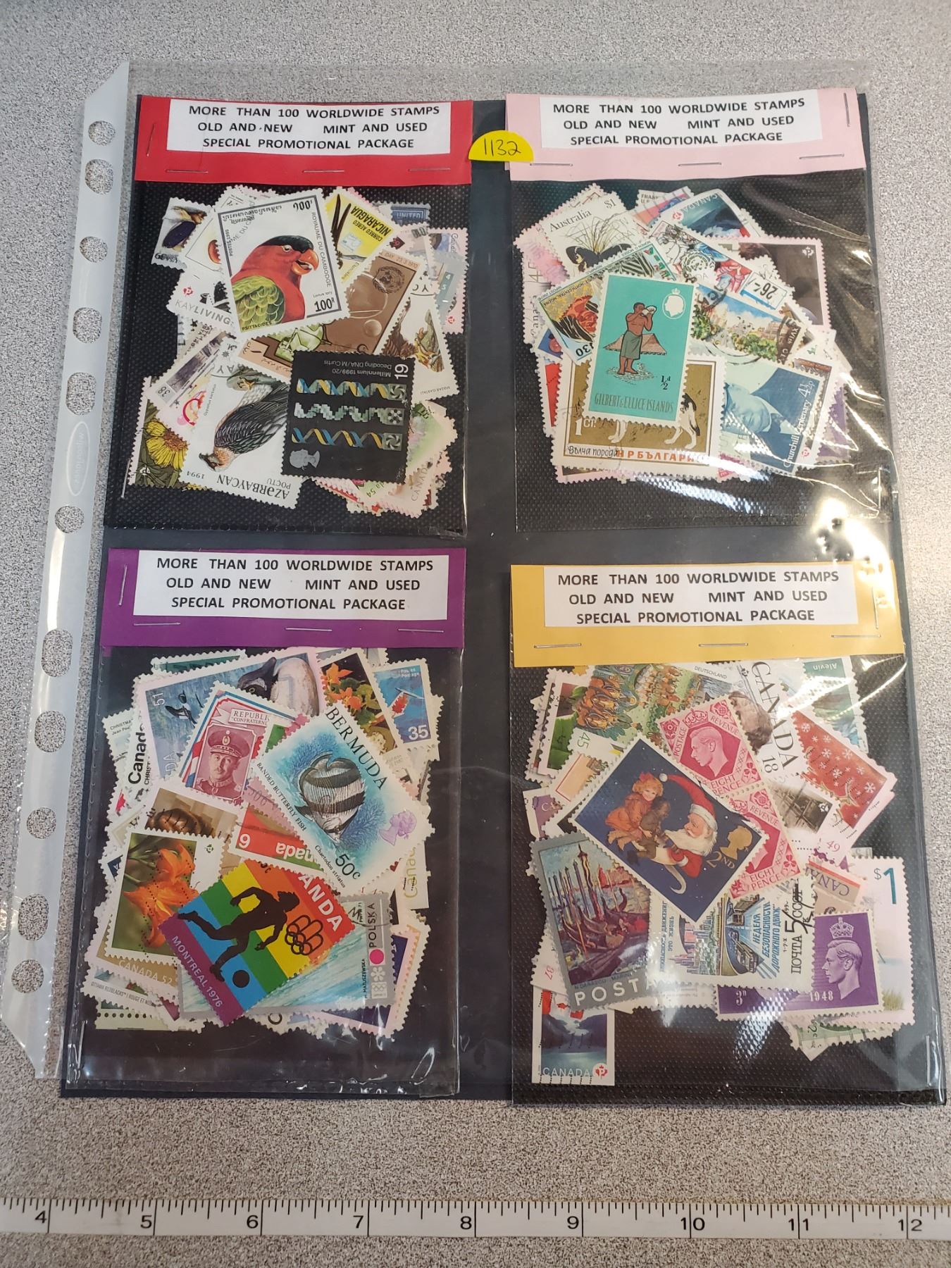 Four 100 stamp packages, nice assortment
