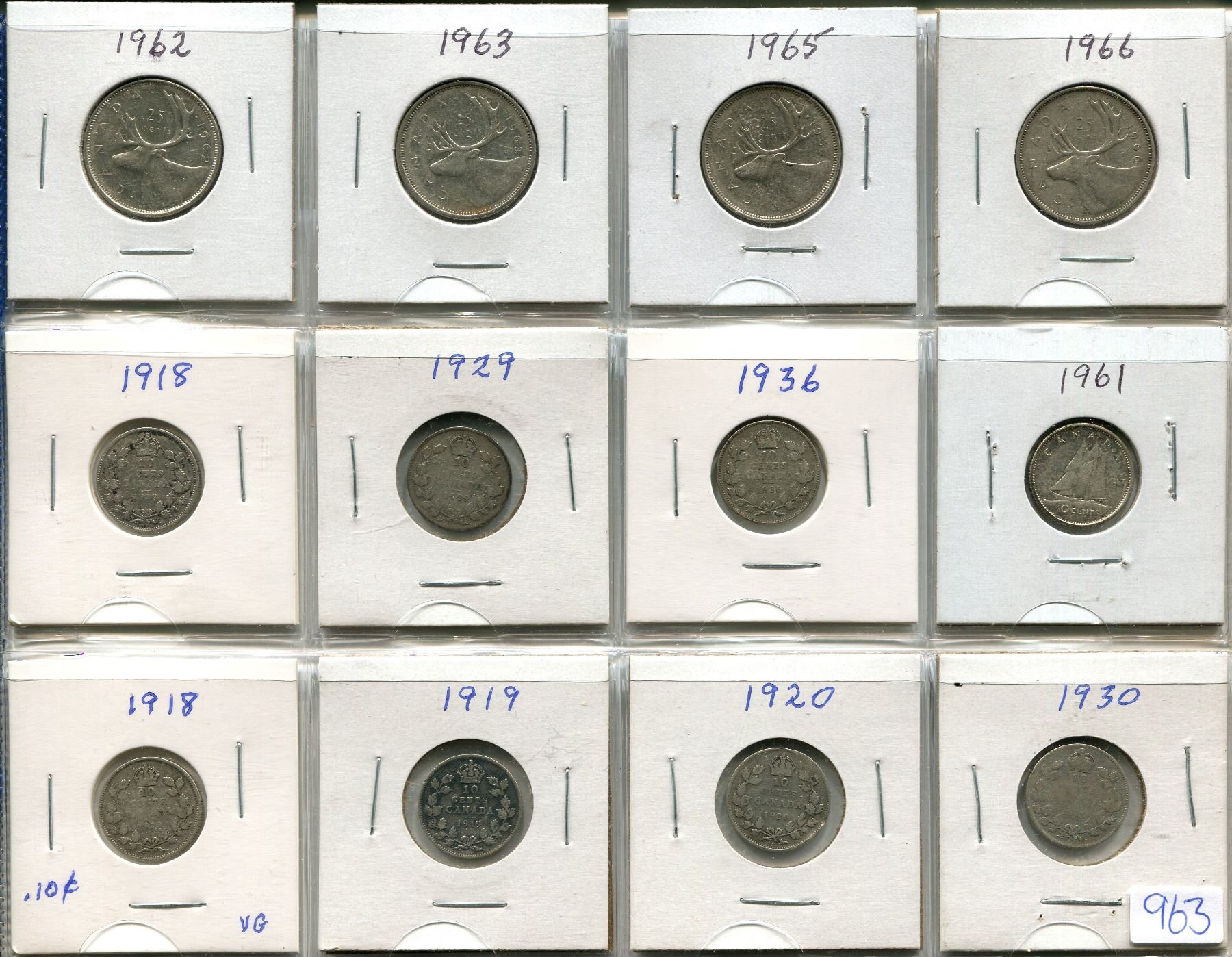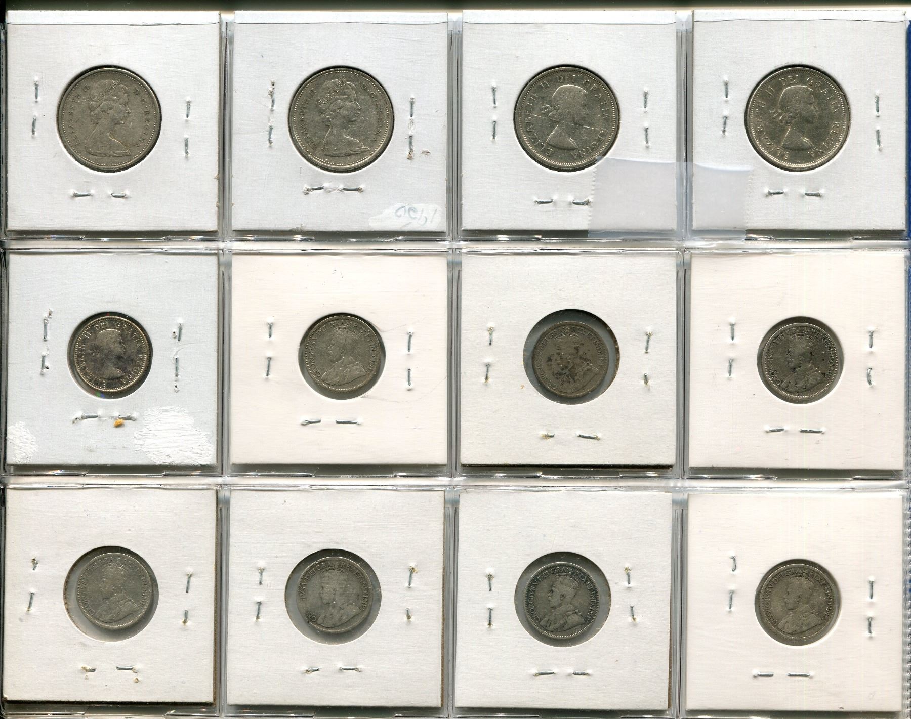 Four Canadian silver Quarters and Eight Dimes