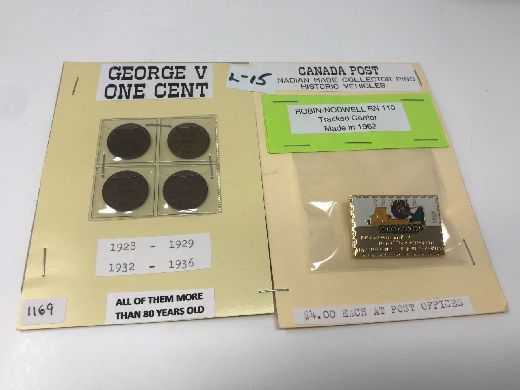 Four George V One Cent And Historic Canada Post Pin
