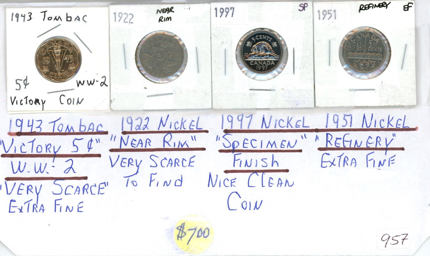 Four Nickels; 1943 Tombac, 1922 NR, 1997 SP, 1951 EF
