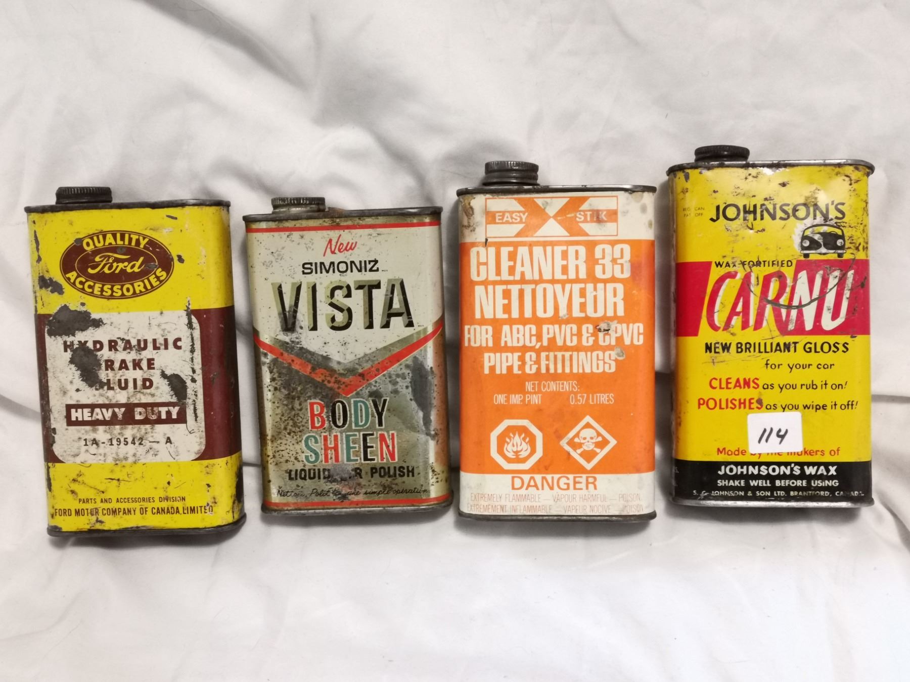 Four oil related tin cans