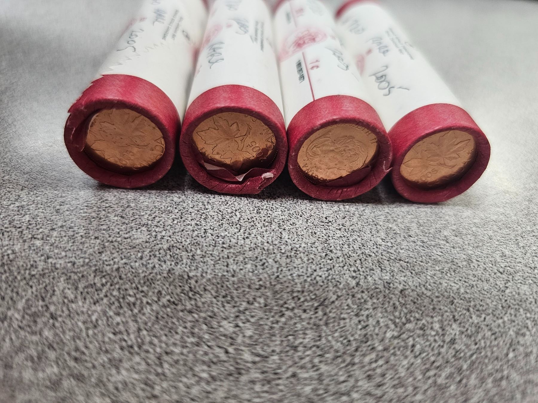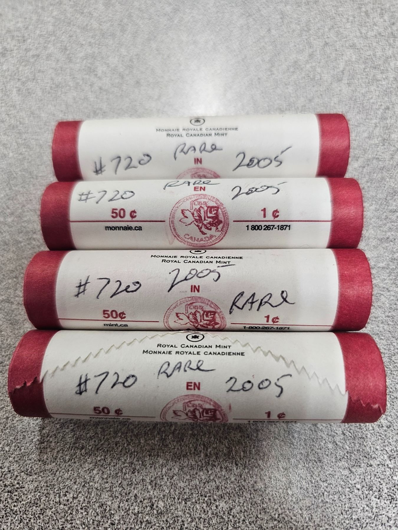 Four rolls rare 2005 Canadian 1¢ pennies - B.U.