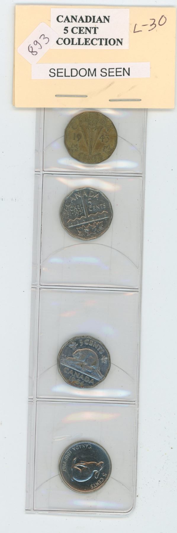 Four seldom seen 5c: 1943, 1951, 1954 and 1967