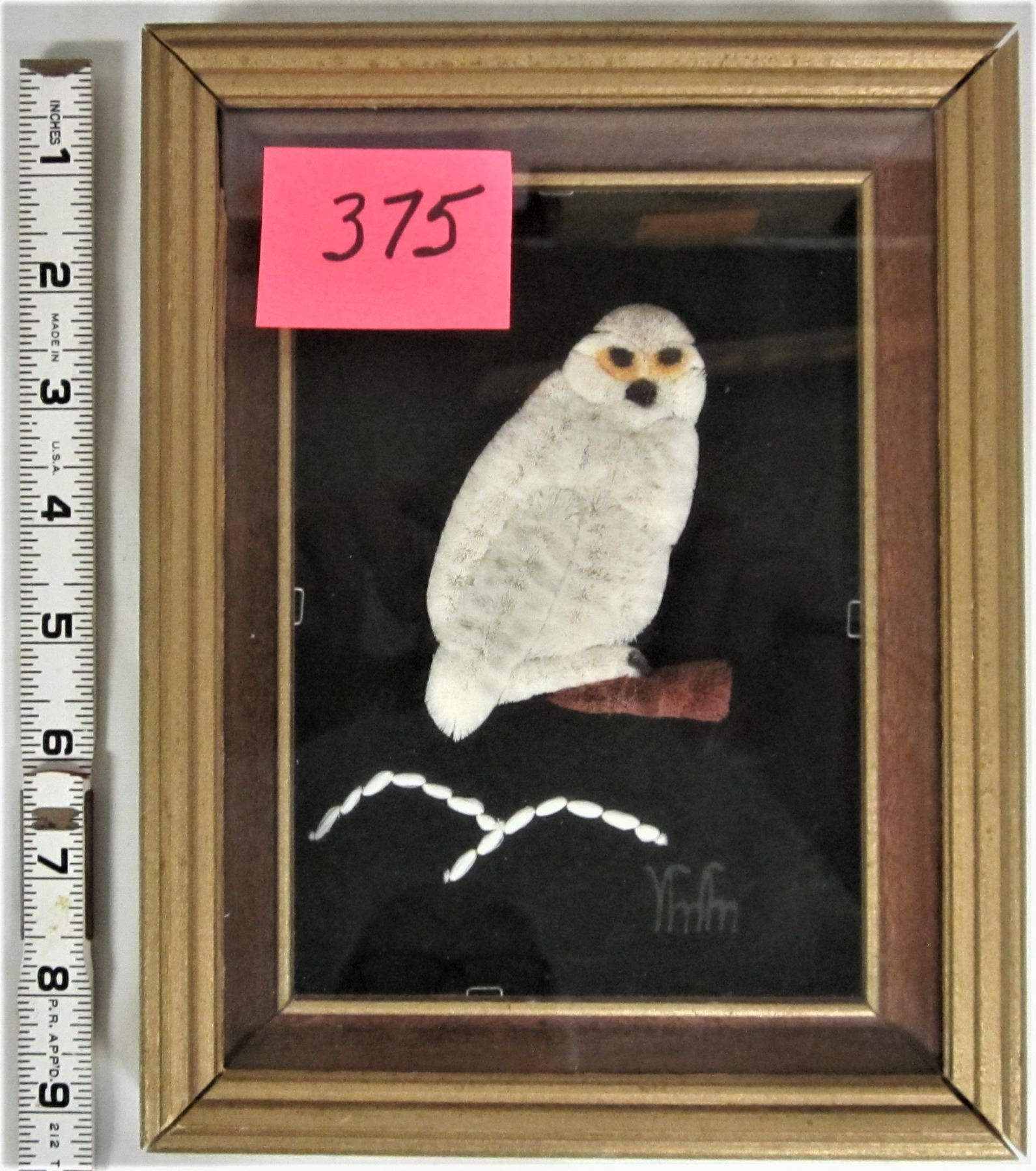 Framed and Matted 5"x7" "Snowy Owl" Caribou Hair Tufting