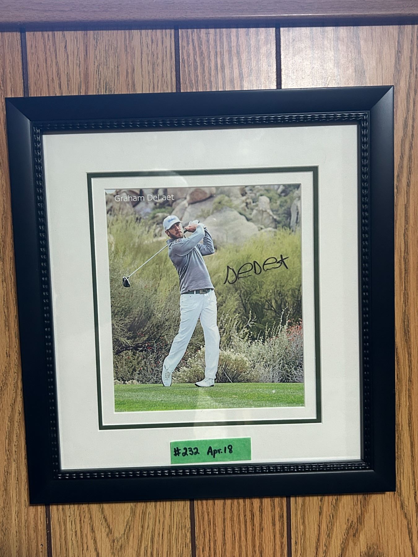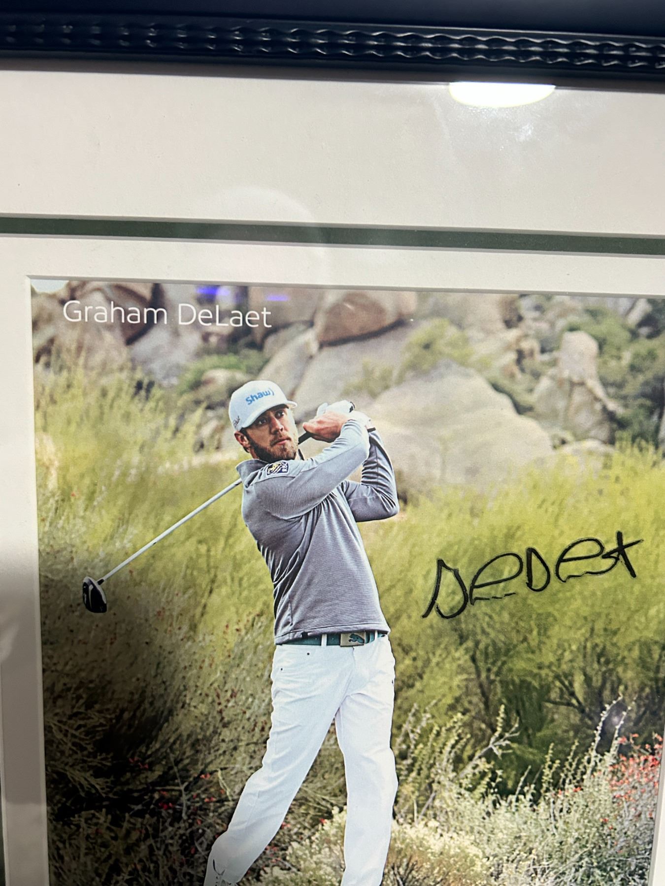 Framed, autographed picture of Sask. golfer Graham DeLaet (frame 16” x 14.5”)