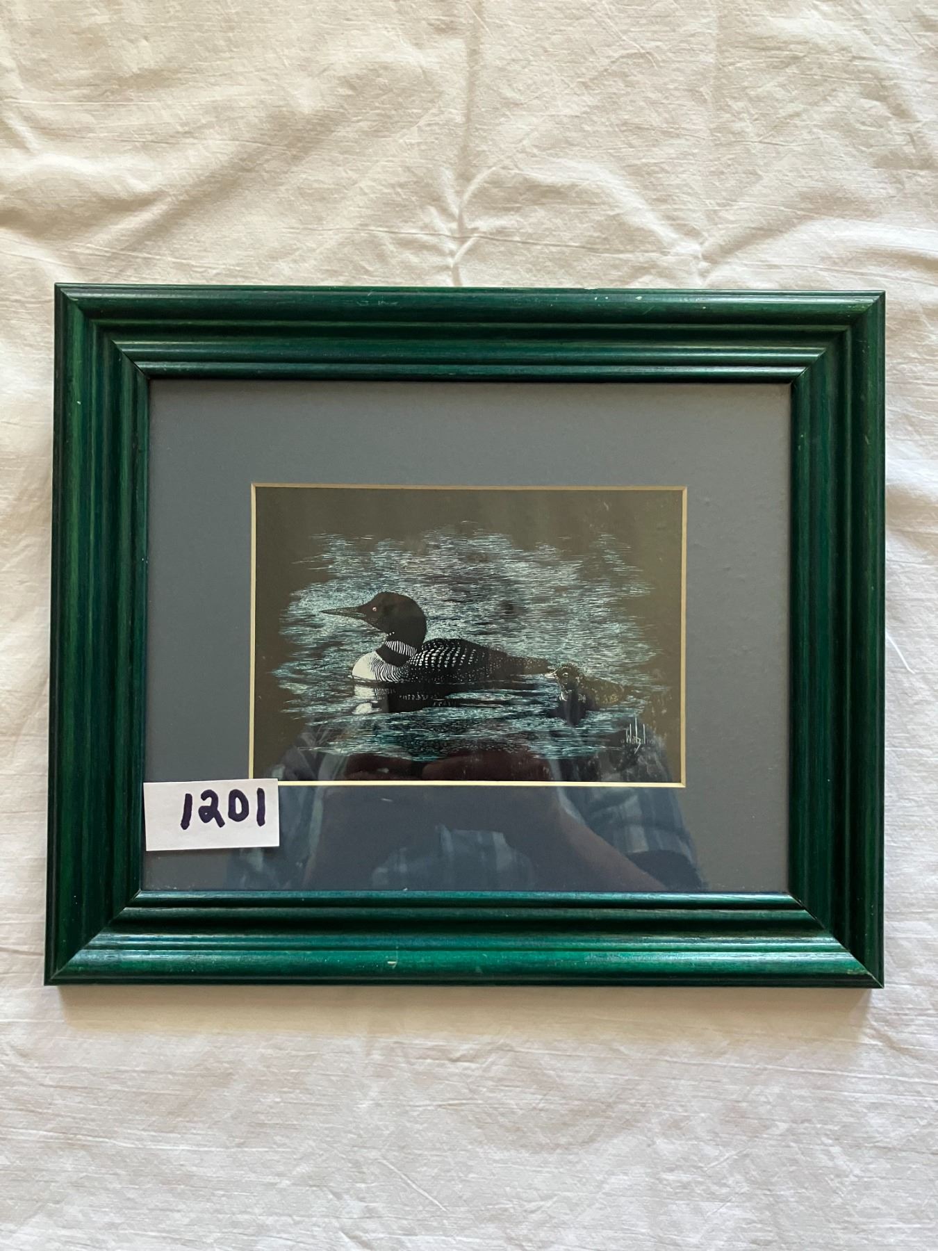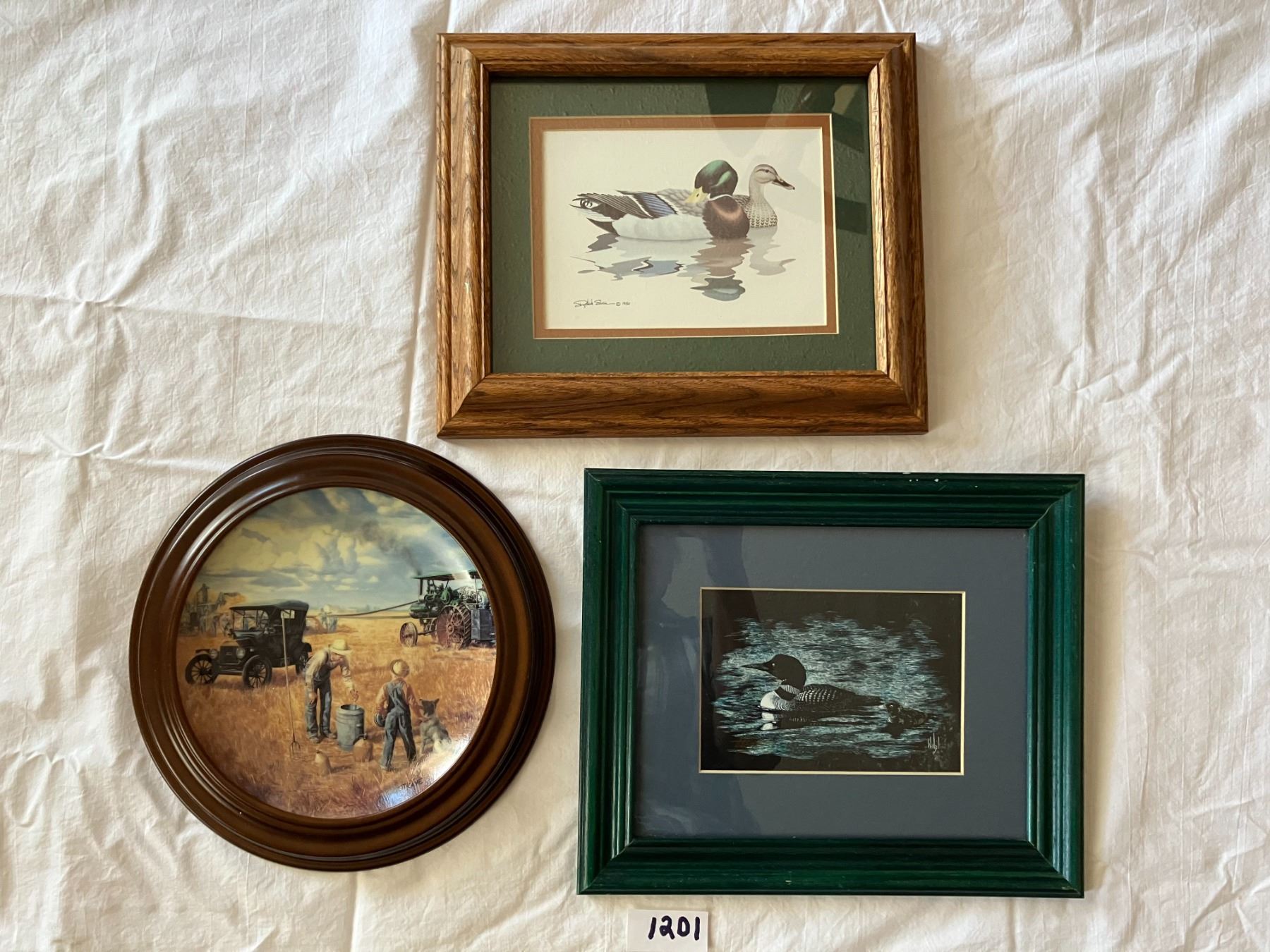 Framed collector plate and 2 framed pictures -1980 Richard Sloan print 31cmx26cm - Al Nelson Weifzel Original scratchboard Loon 31cmx26cm