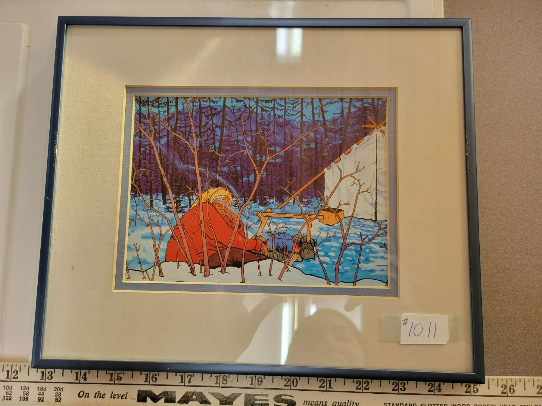 Framed print of a woman in winter camp