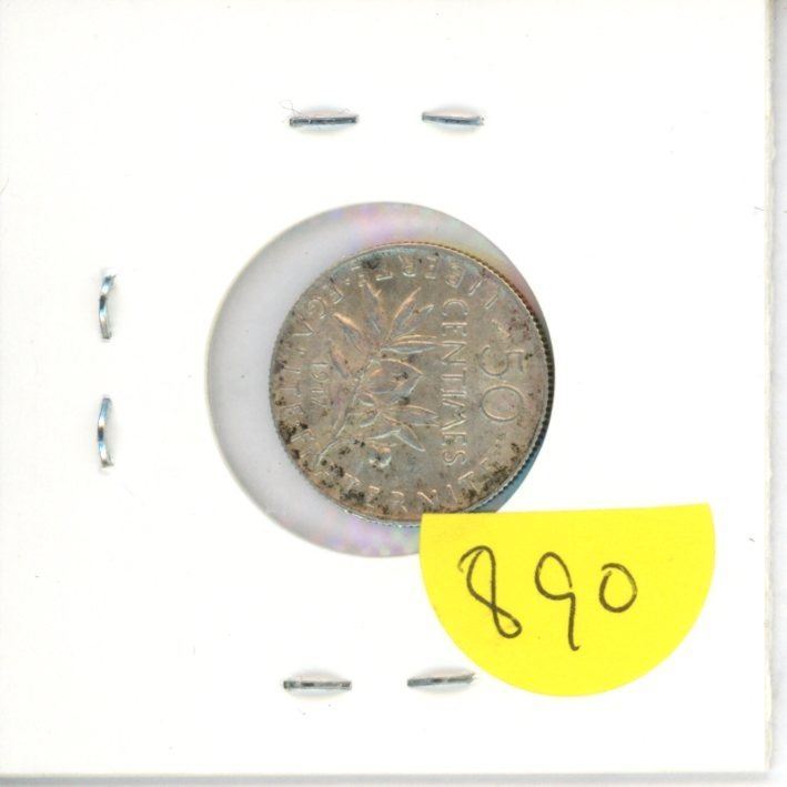 France. 1917 50 Centimes. World War I Silver coin. AU.