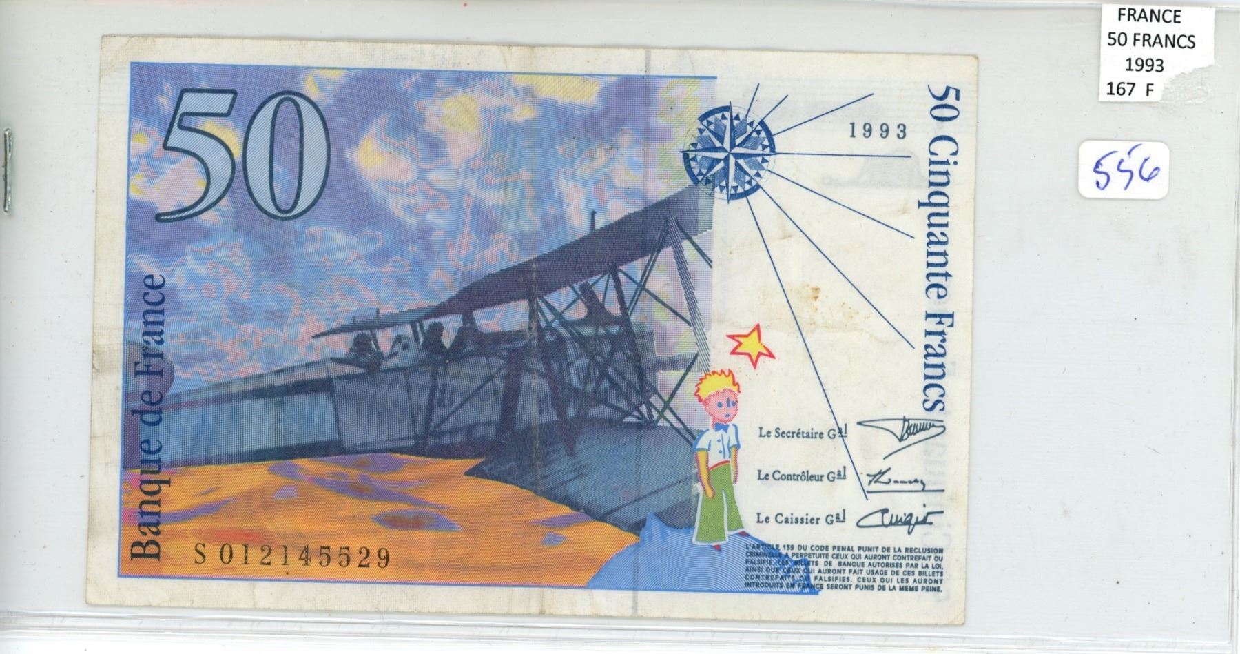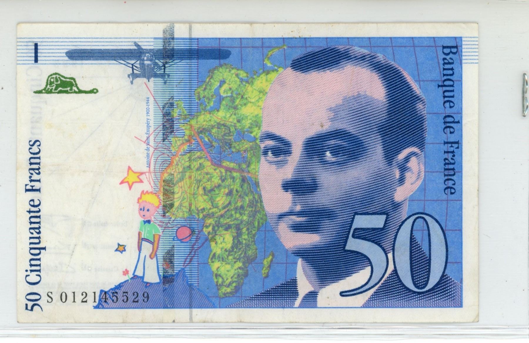 France. 1993 50 Francs. High denomination note depicts a biplane. F.