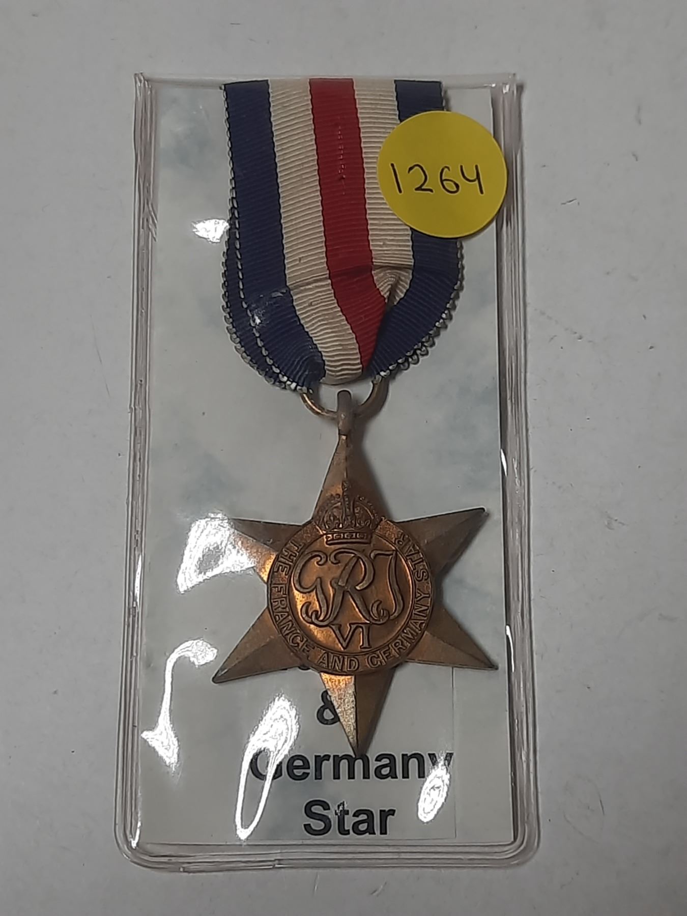 France and Germany Star. Awarded for service in France, Belgium, Netherlands or Germany. Correct ribbon.