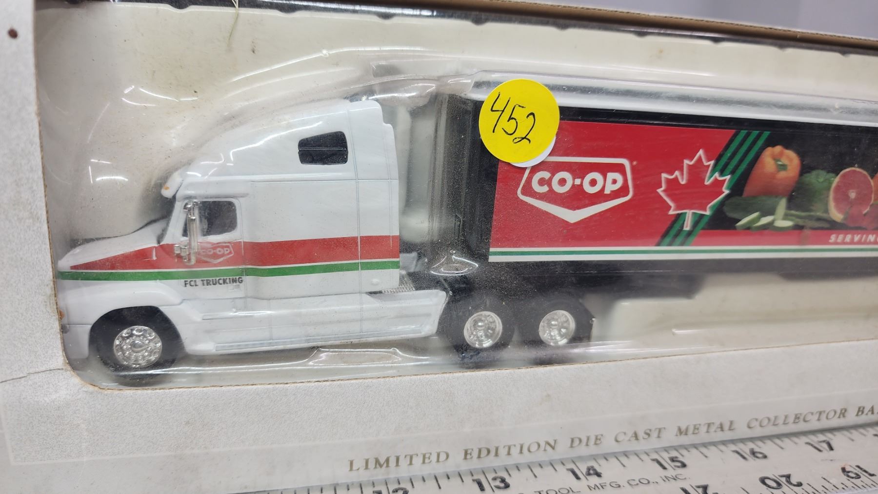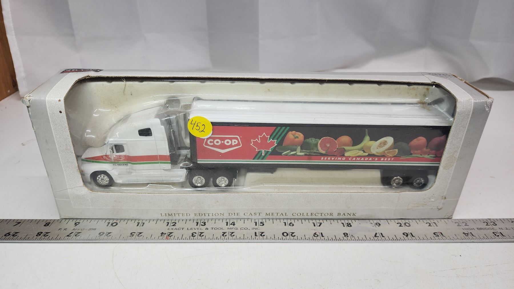 Freightliner die cast "Co-op" semi truck and trailer bank - in box - 12" long