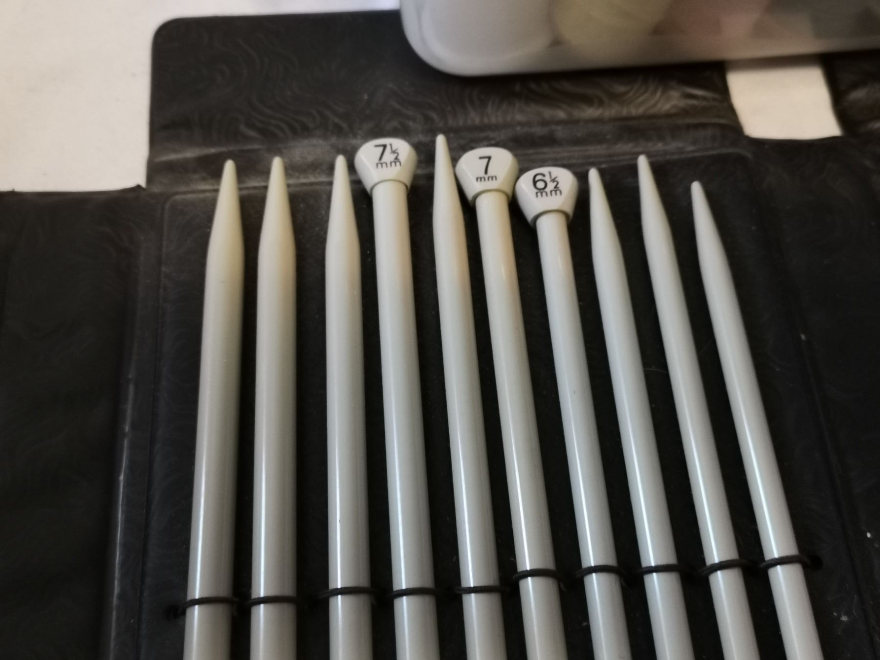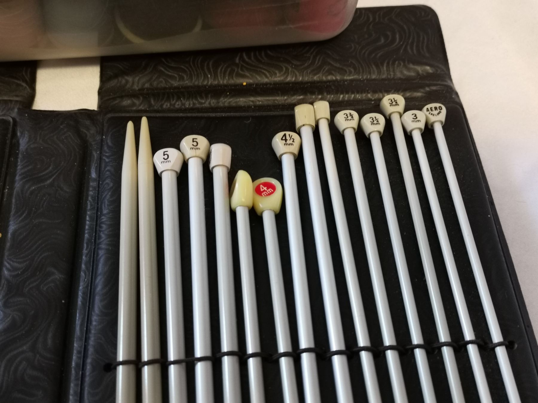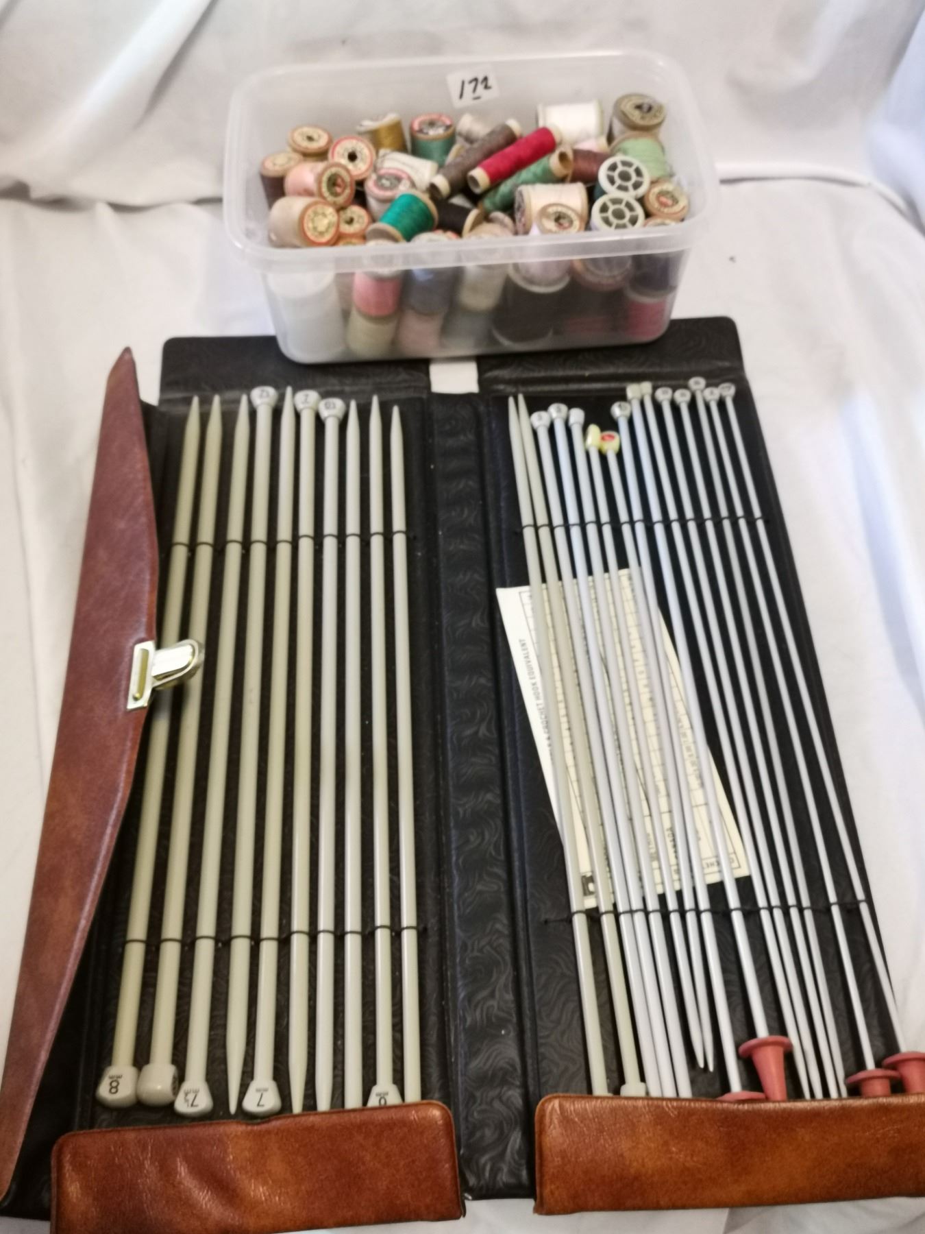 Full Set of Older Knitting Needles, Assorted Thread Spools