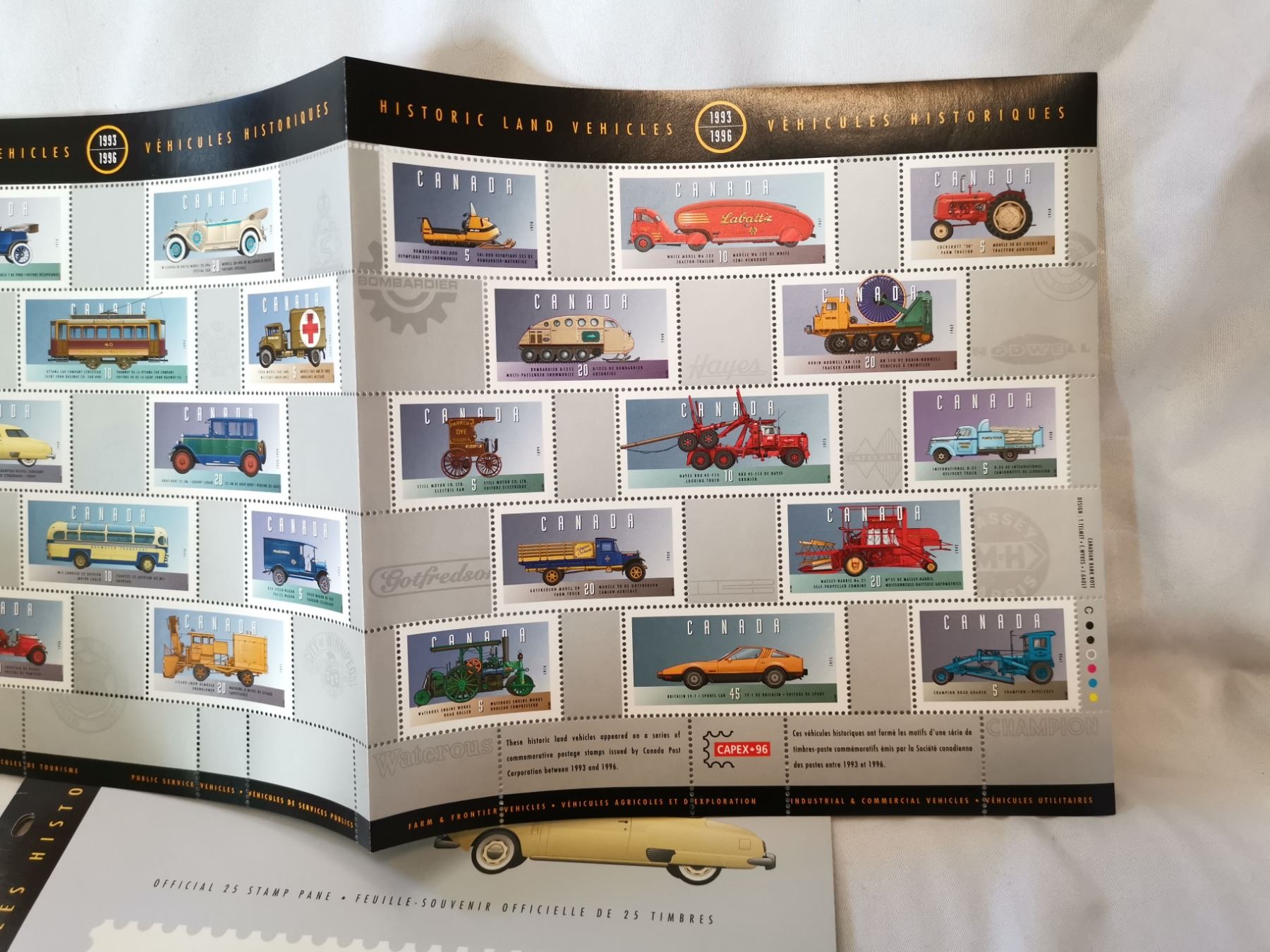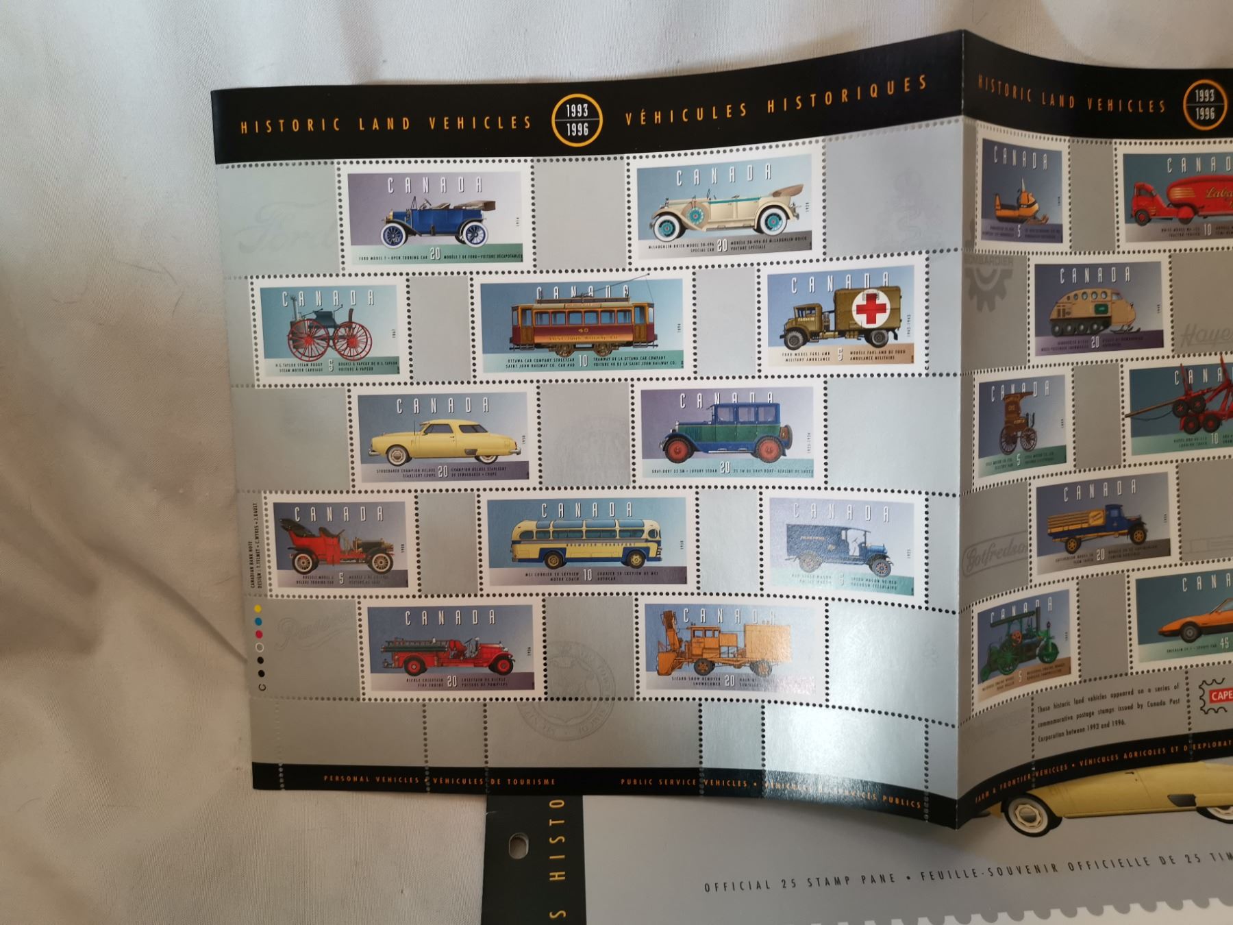 Full Sheet of Historic Land Vehicles Stamps