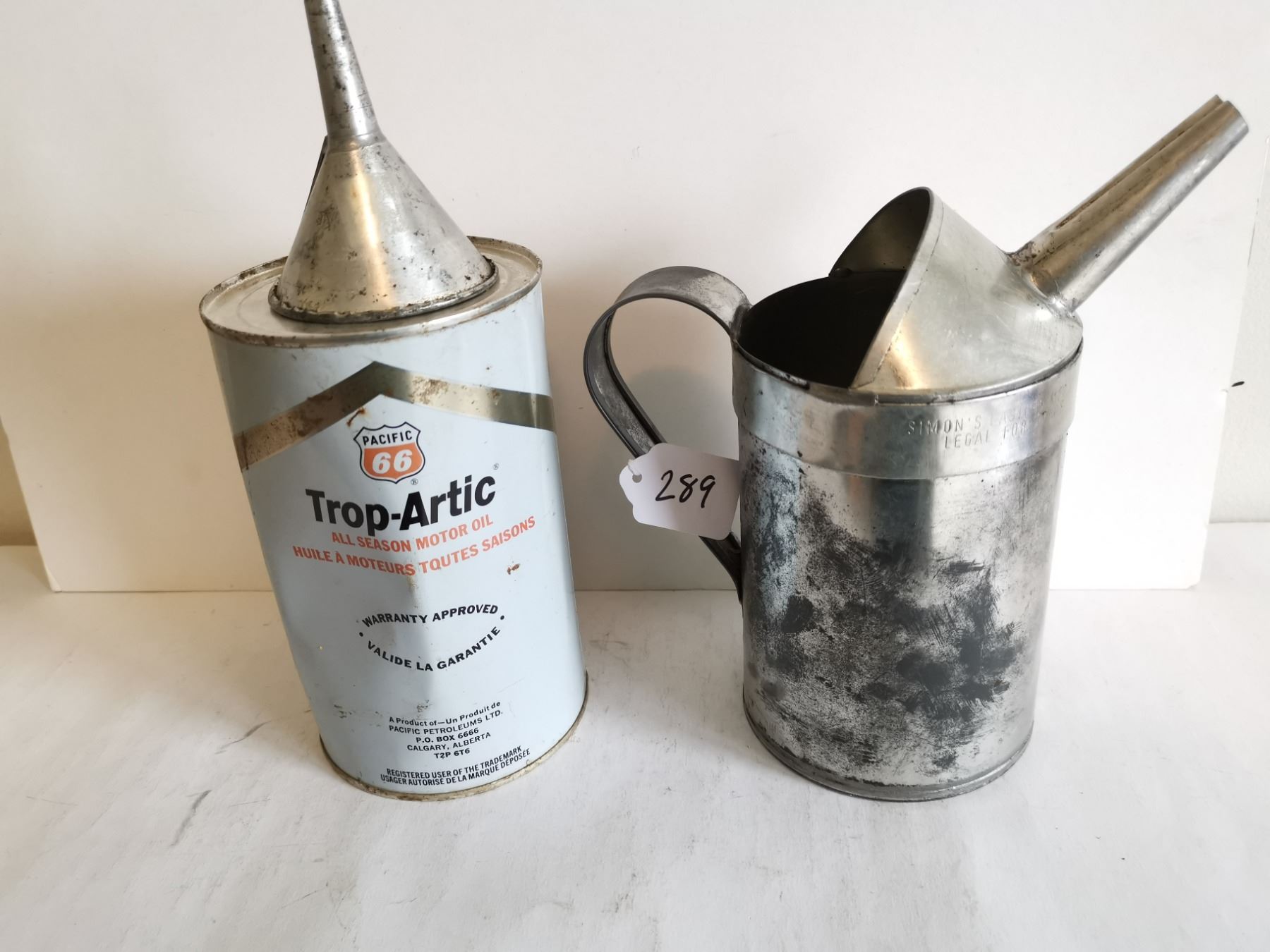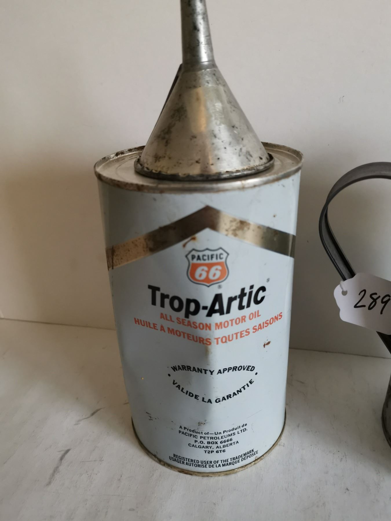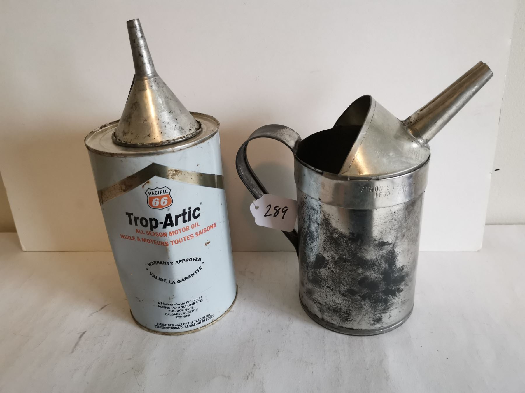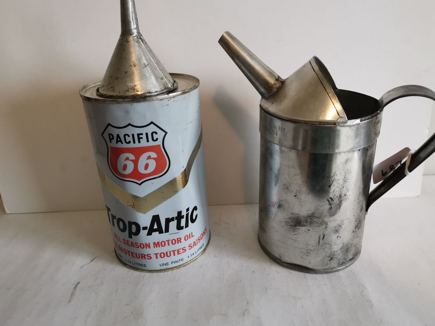 Full pacific 66 oil can, funnel and oil can