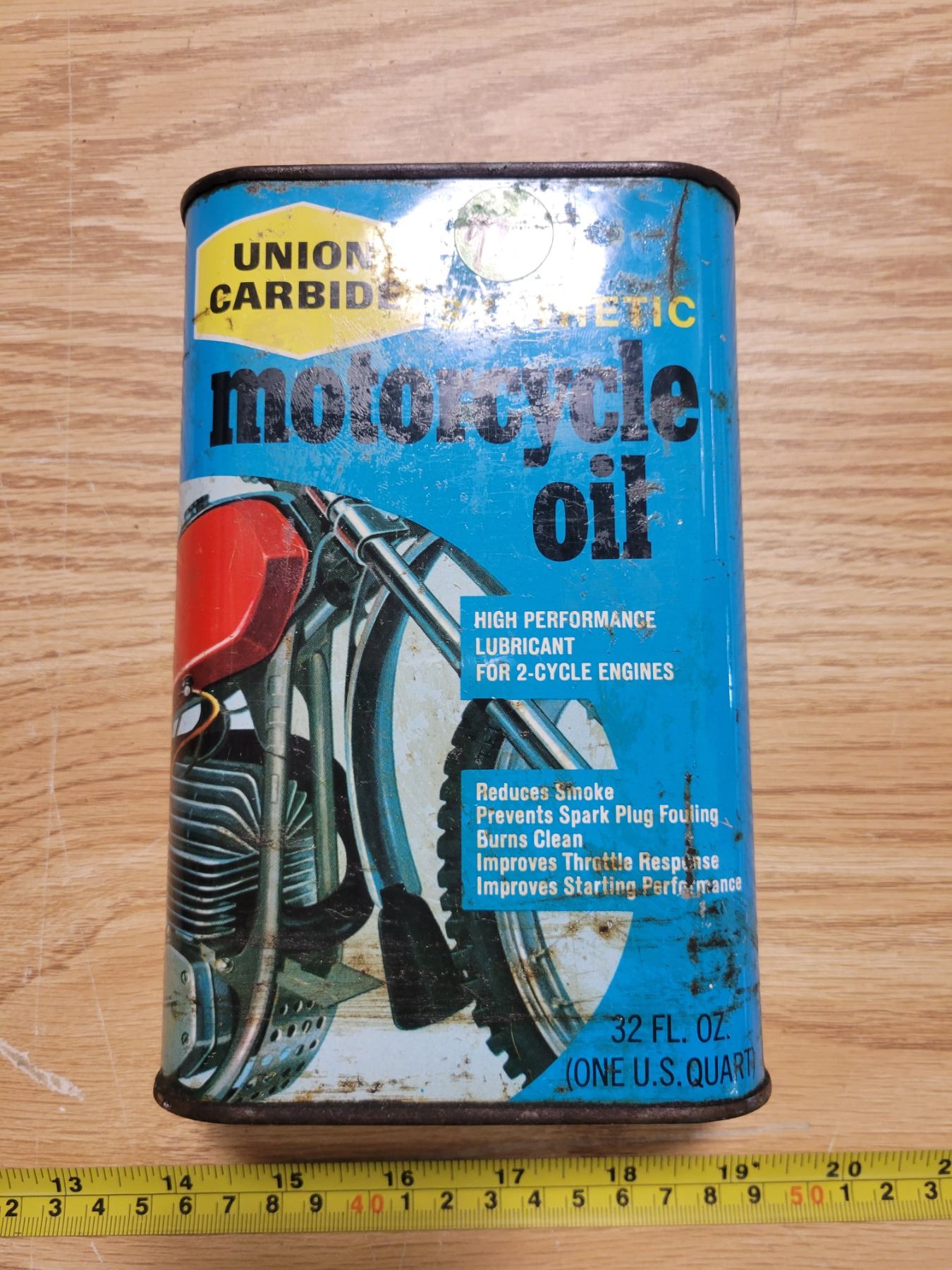 Full synthetic motorcycle quart oil can