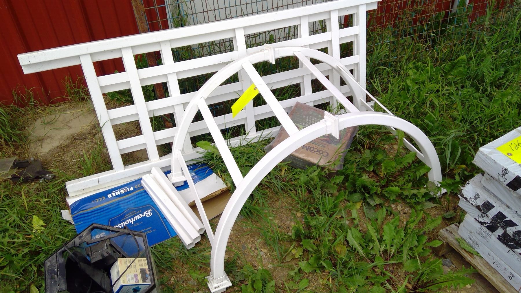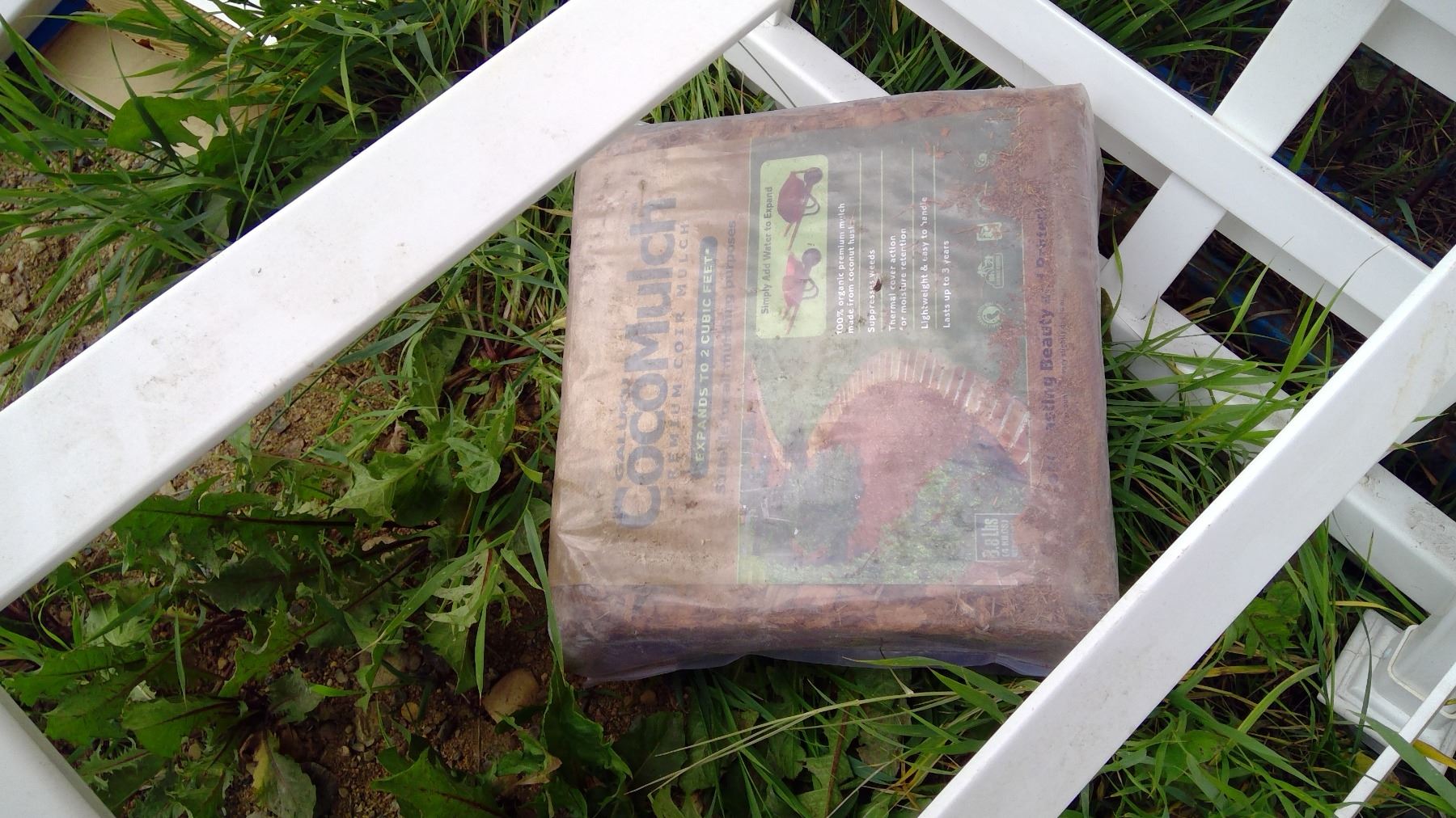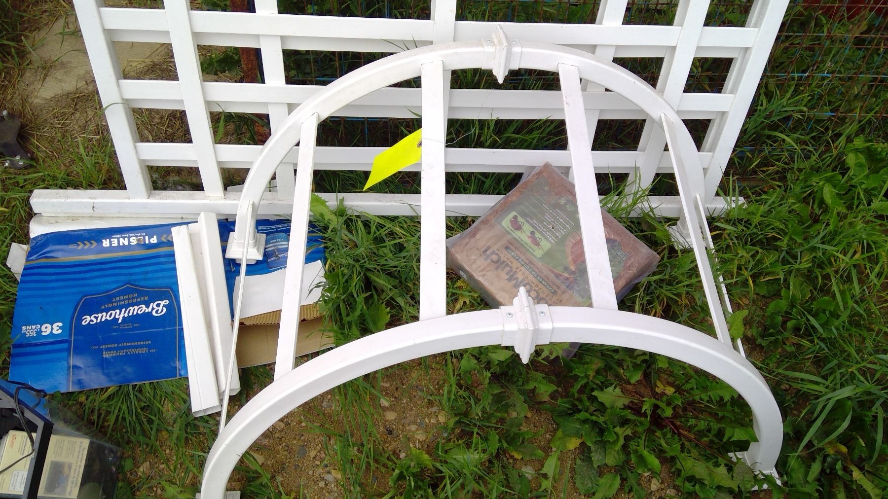GARDEN ARCH, PLASTIC BAG OF MULCH