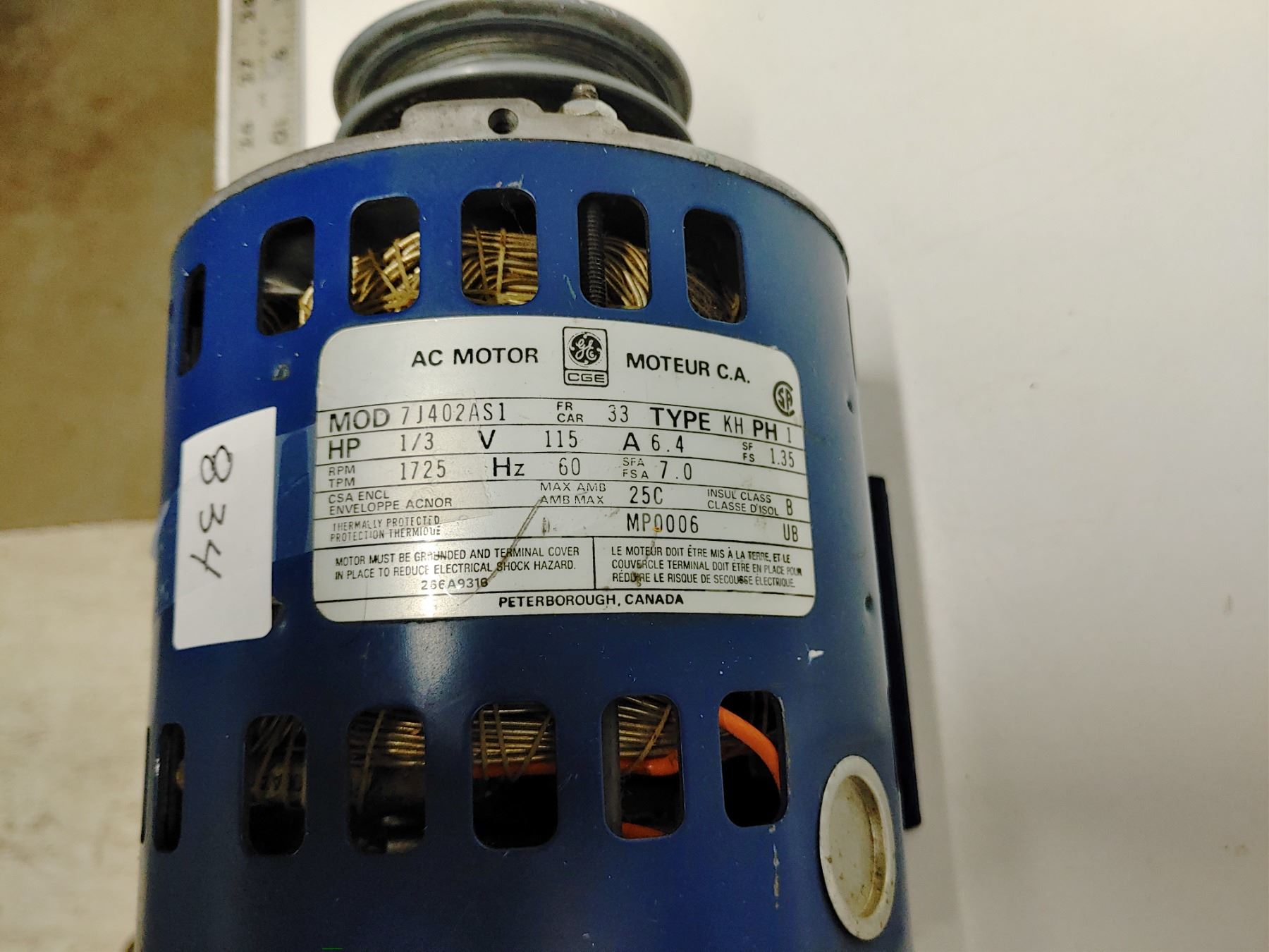 1/3 HP 1725RPM With Adjustable Variable Speed Pulley Good Running Condition
