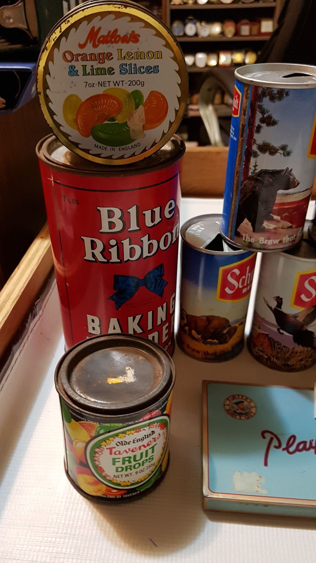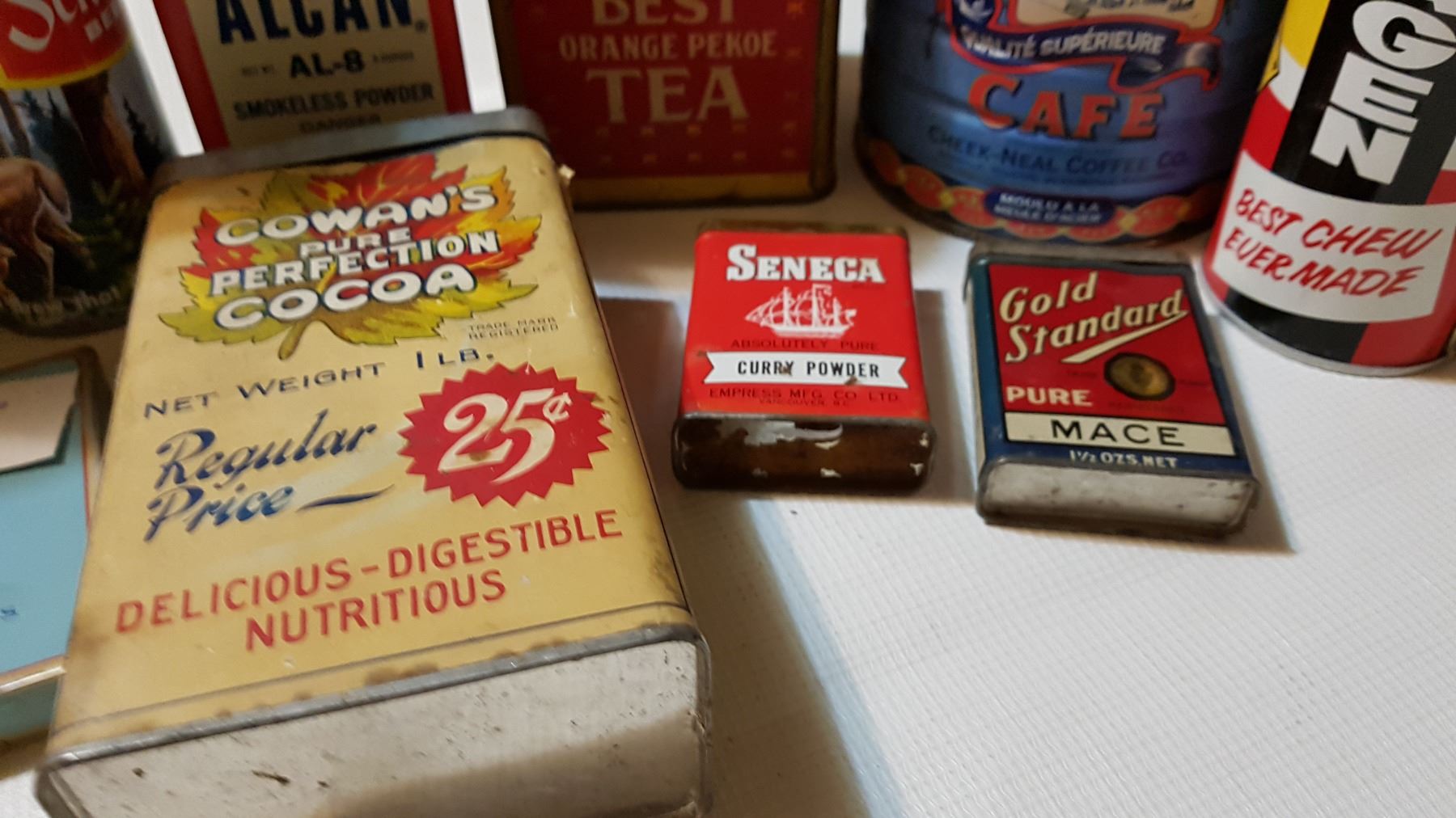 GENERAL STORE TINS, LARGE LOT, SOME RARE