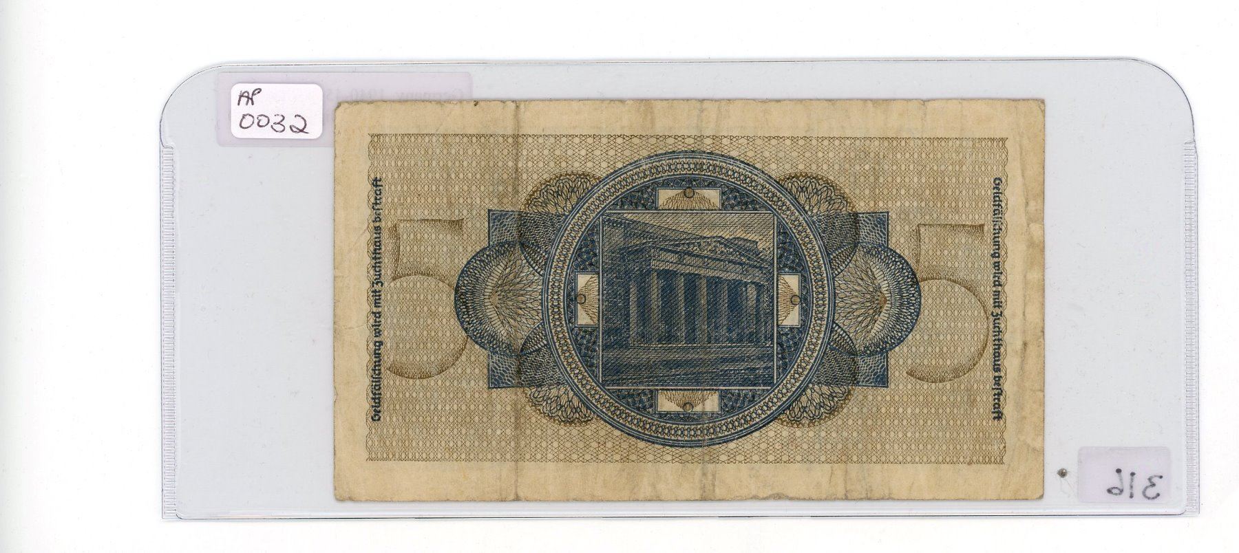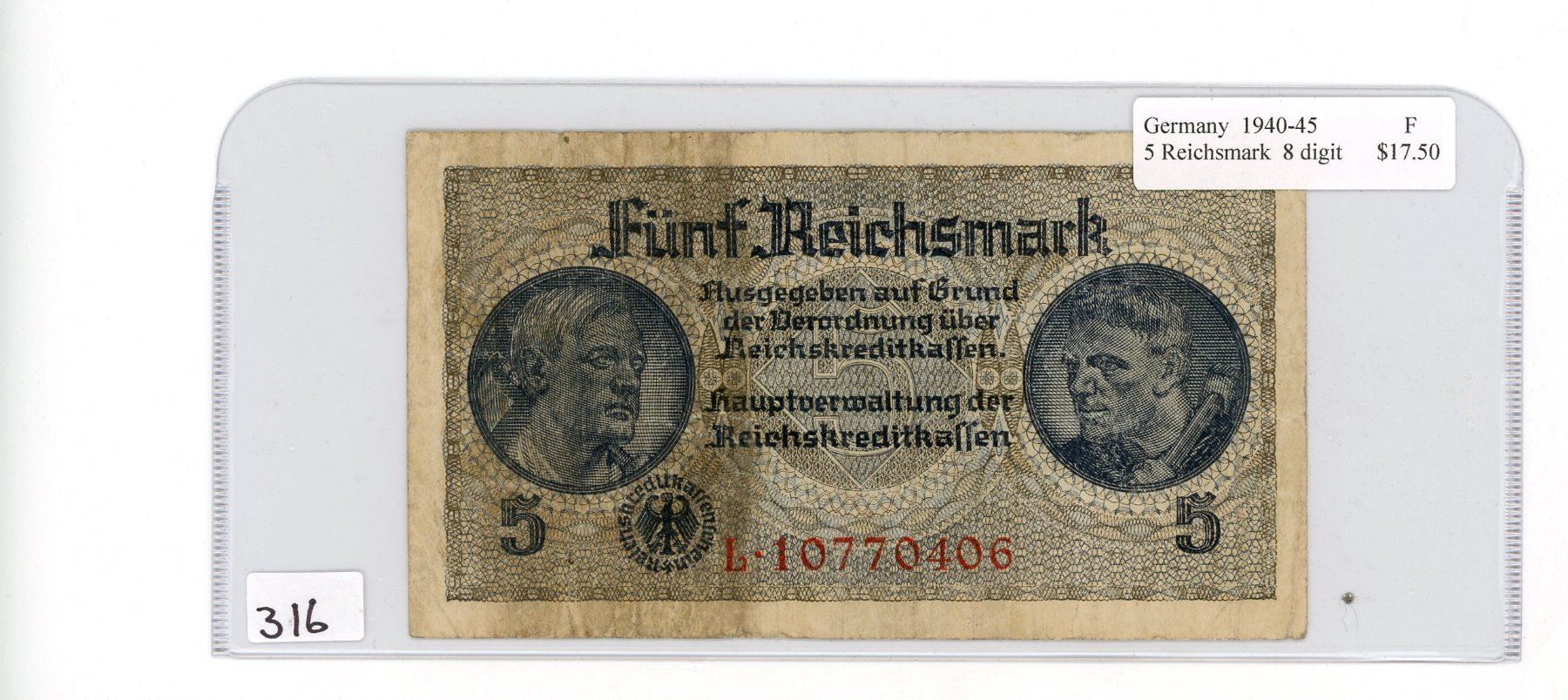 GERMAN 5 REICHSMARK BILL (GERMANY) *1940-45* (8 DIGIT)