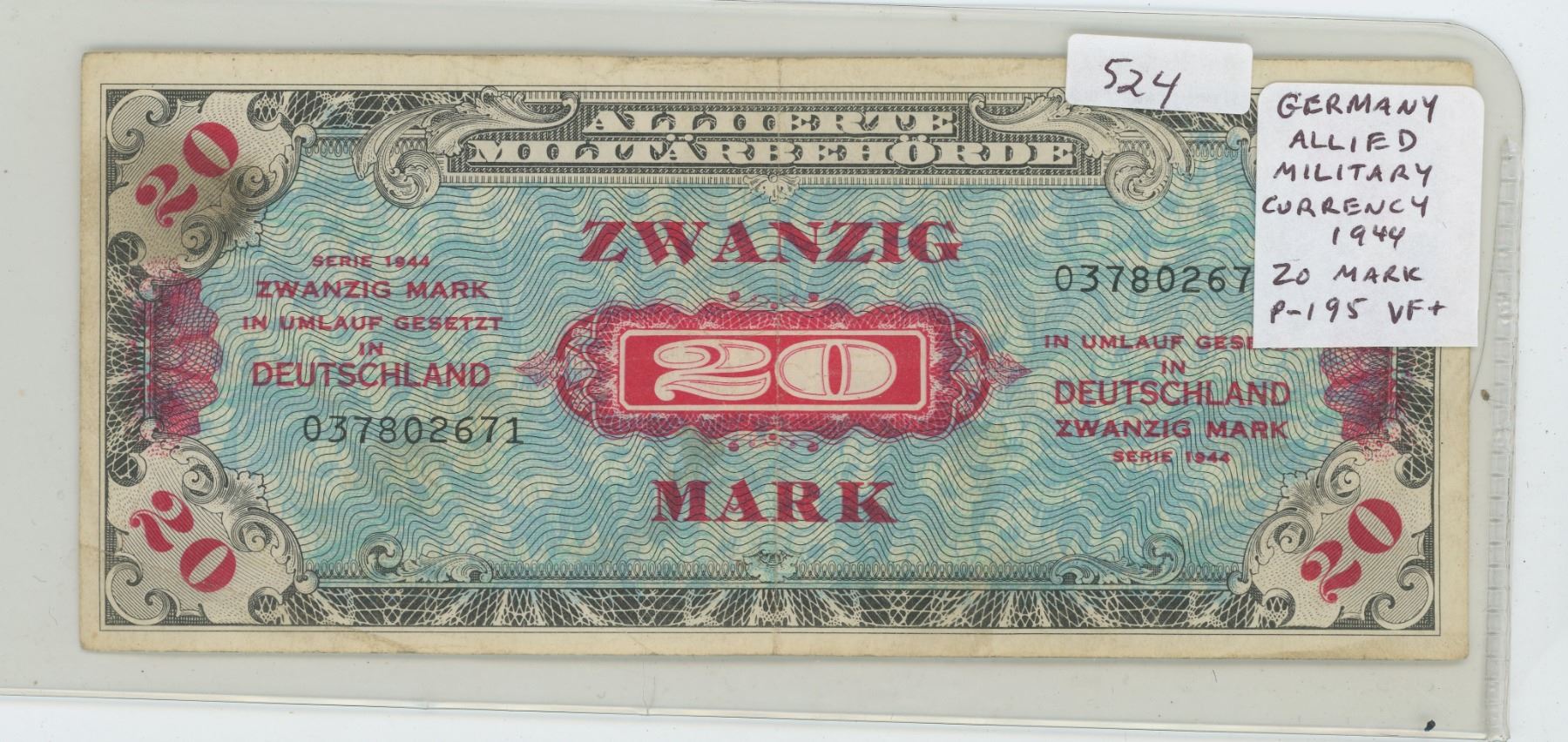 GERMANY. ALLIED MILITARY CURRENCY 1944 20 MARK. P-195. VF+