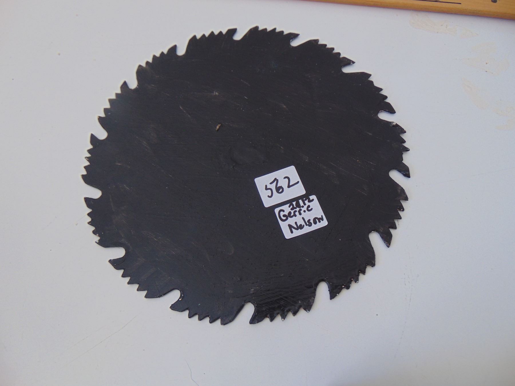 GERRIC NELSON COY AND WATER LILLIES ON OLD SAW BLADE