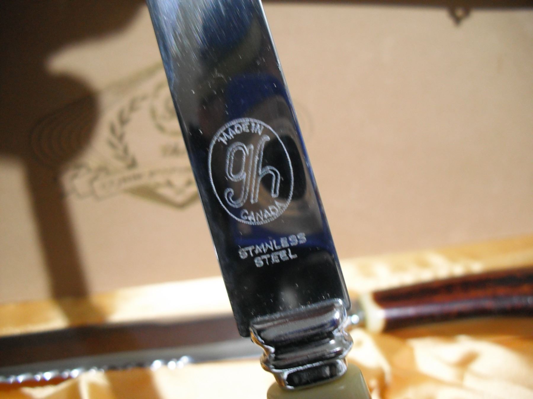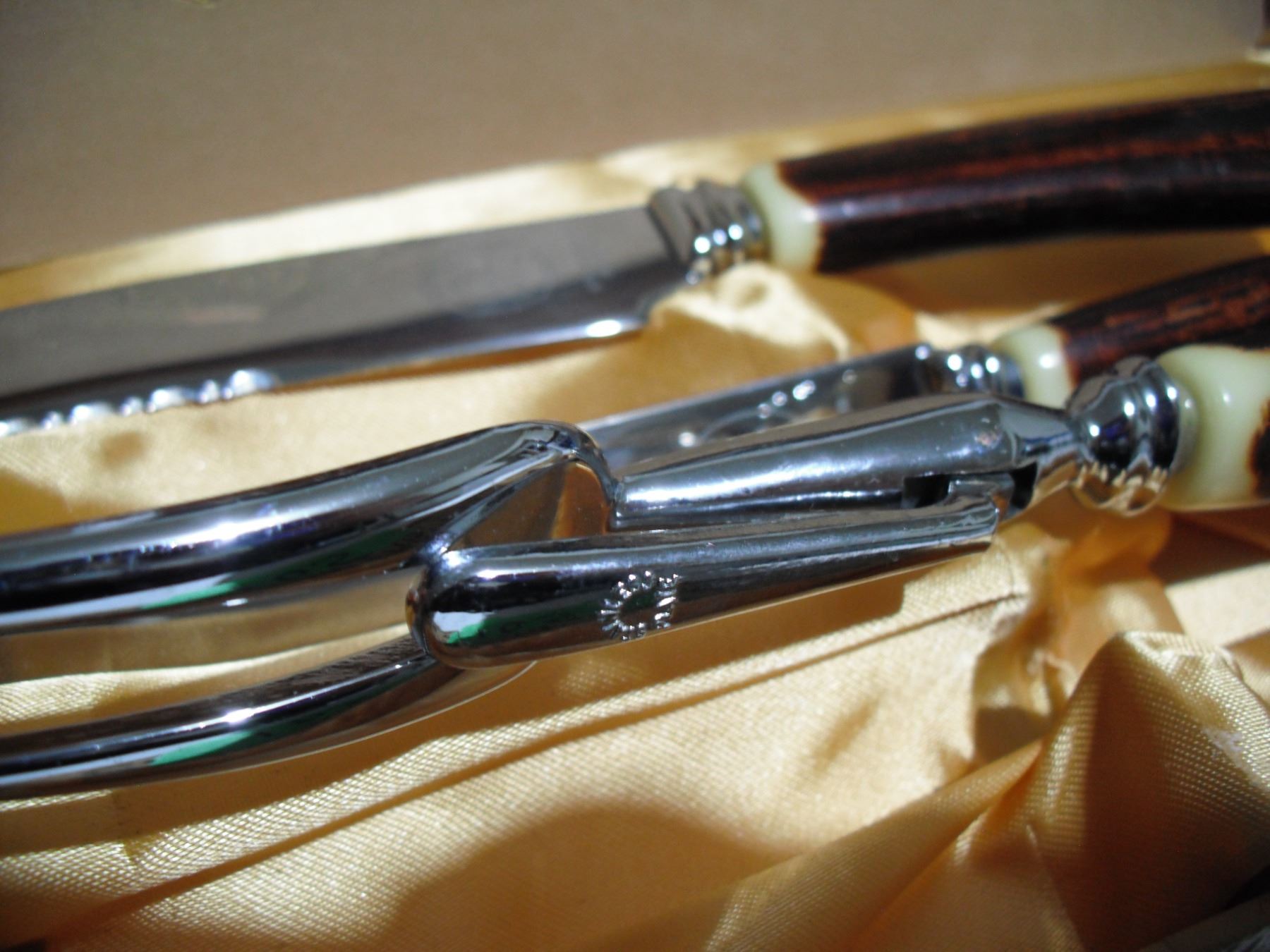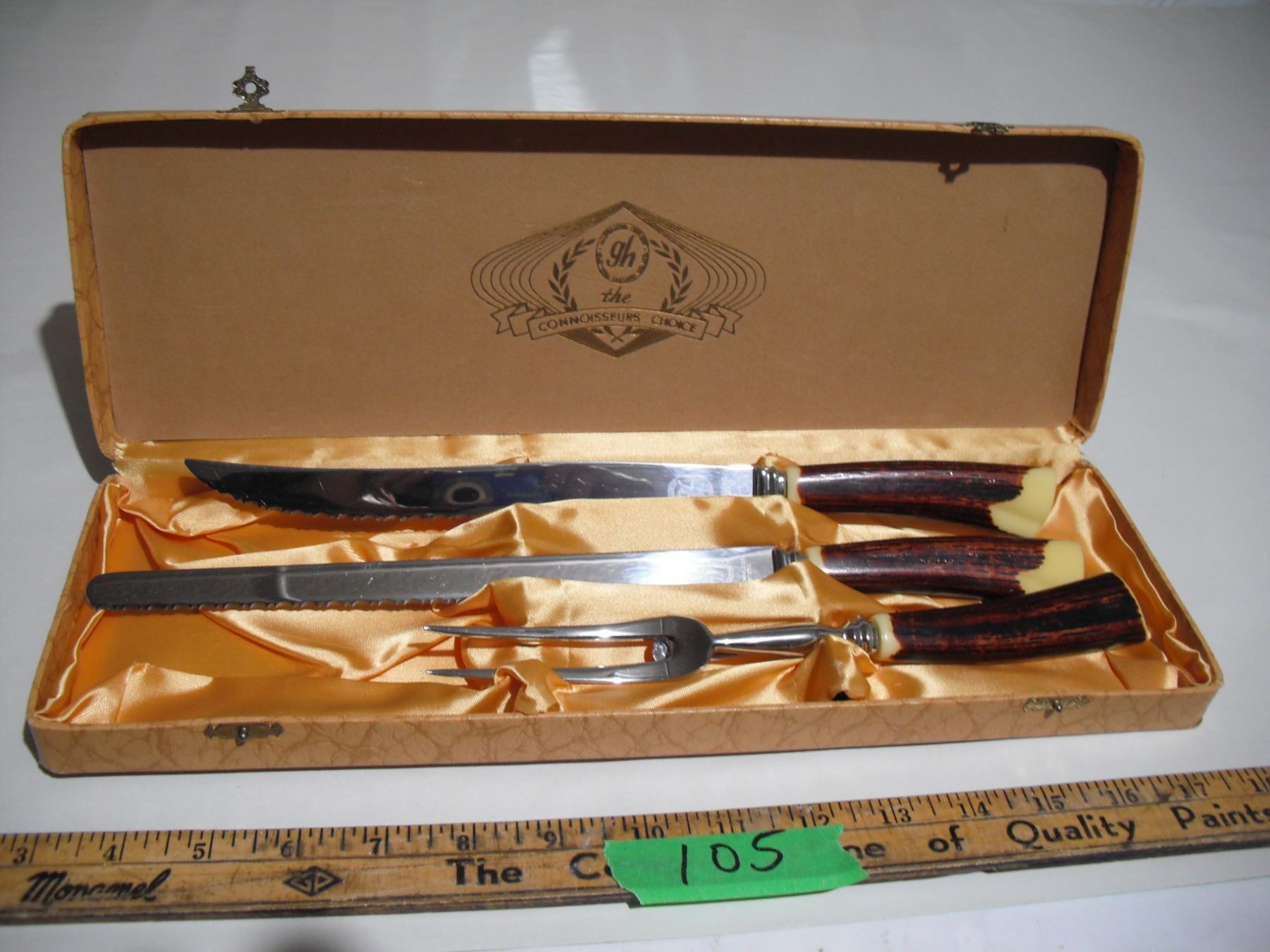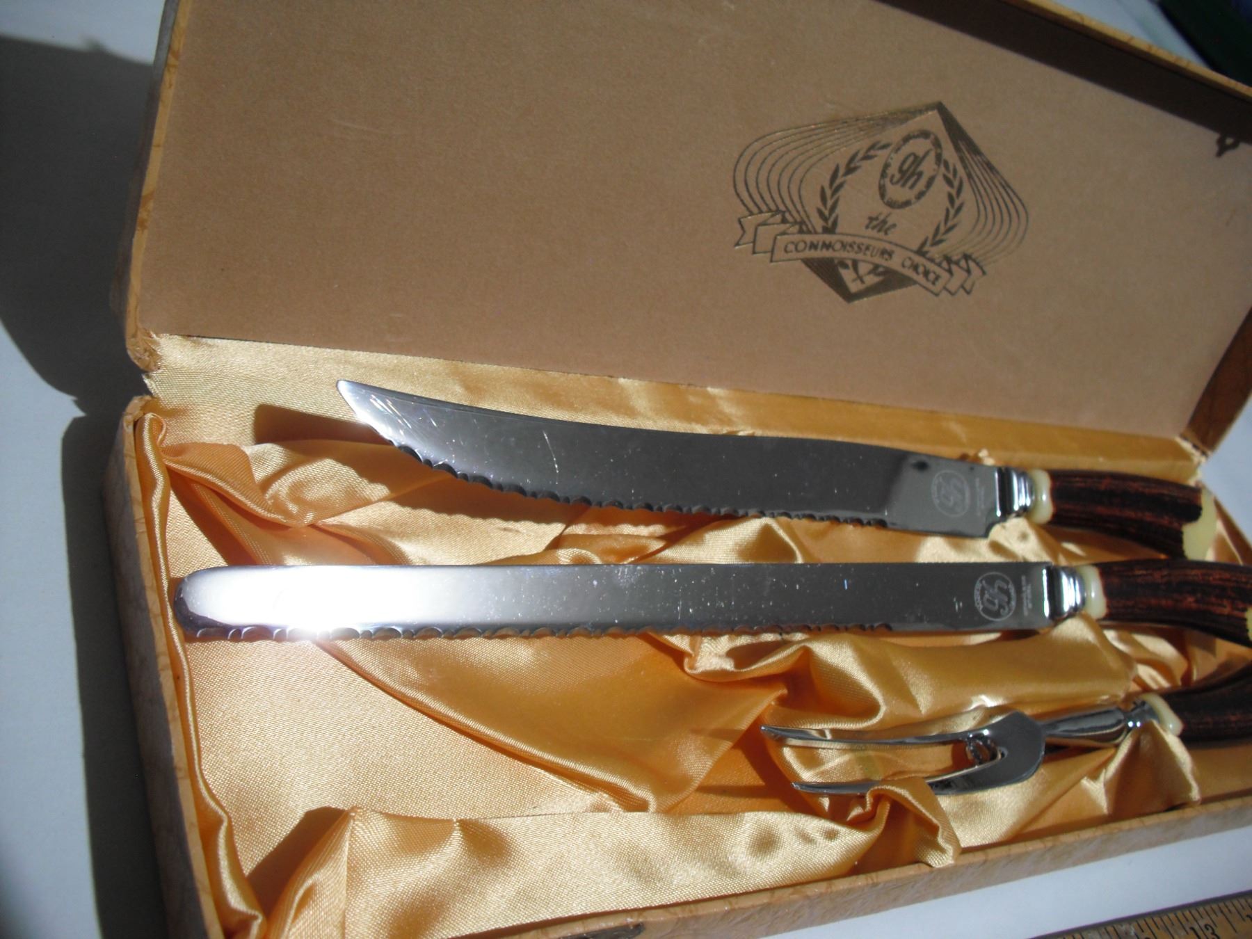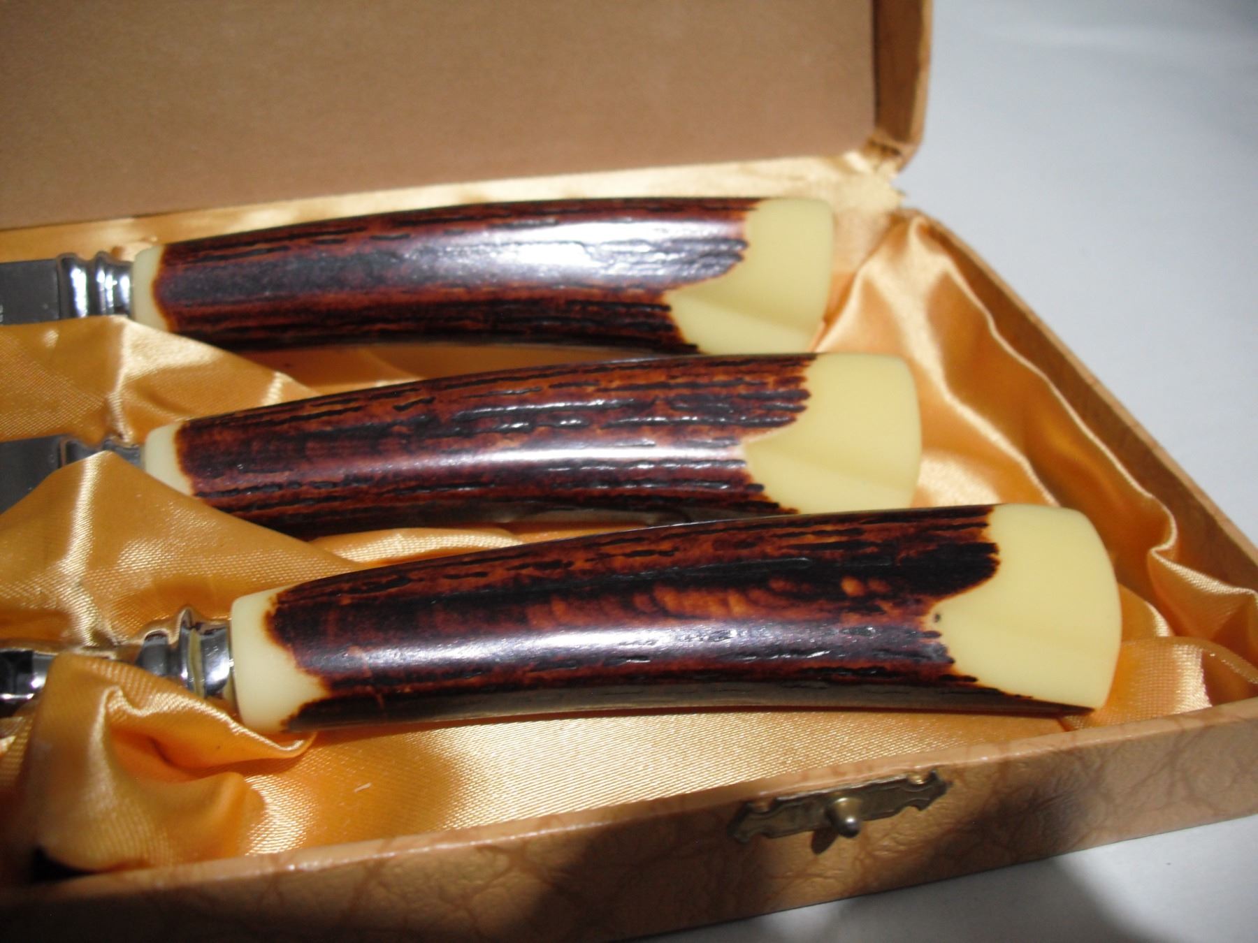 GH hill GM 3 pc bone handle carving set in original case