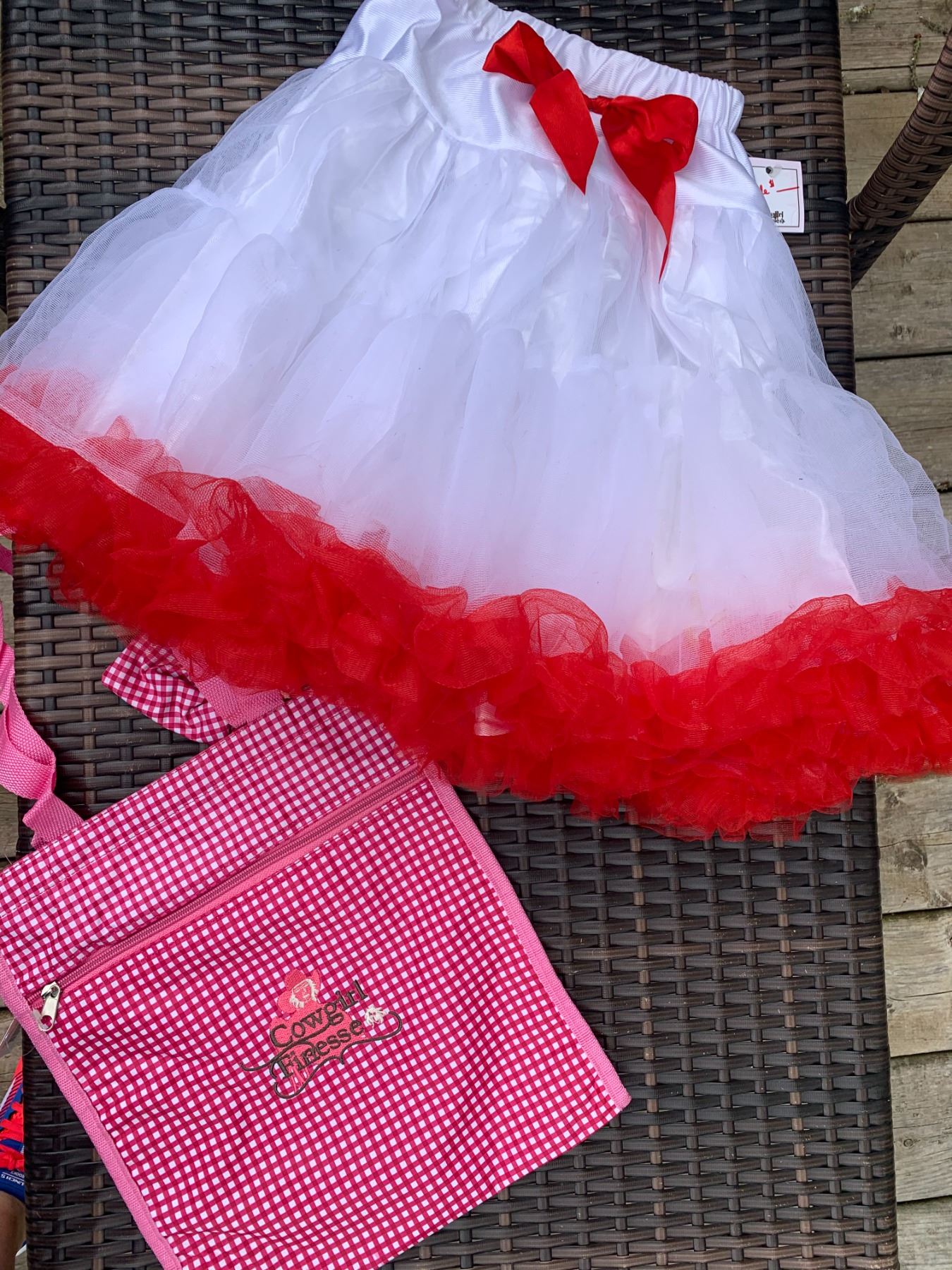 GIRLS WHITE TUTU SKIRT WITH RED RUFFLE SIZE 6/COWGIRL FINESSE TOTE BAG!!