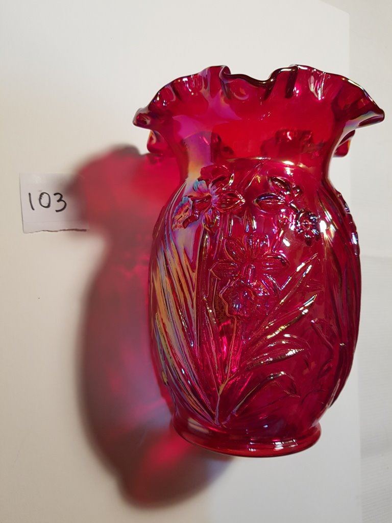 GLASS VASE (FENTON RED CARNIVAL) *OVER 8"*