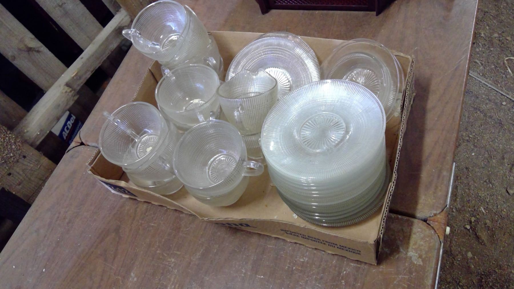 18 PLATES, 12 TEA CUPS, 4 SAUCERS, 2 INDENTED PLATES, CREAMER AND SUGAR DISH