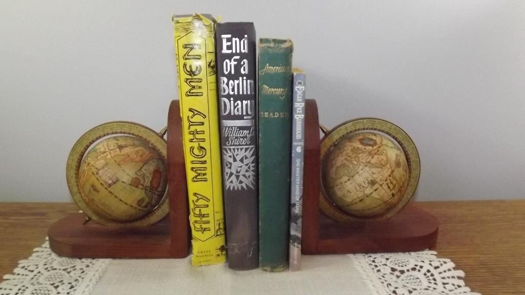 GLOBE BOOKENDS, 4 VINTAGE BOOKS