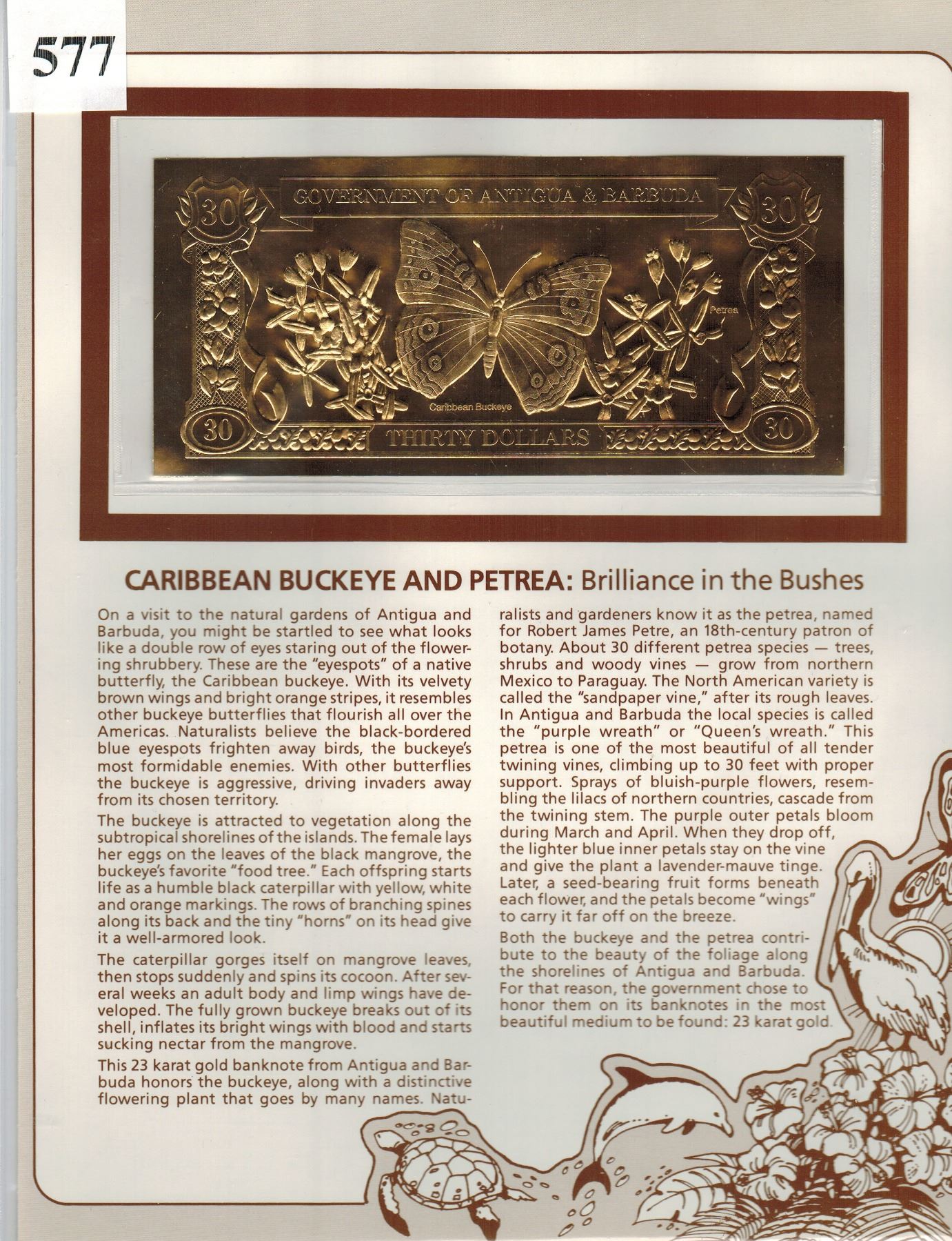 GOLD BANK NOTE - ANTIGUA & BARBUDA - CARIBBEAN BUCKEYE & PETREA - 30 DOLLARS - LEGAL TENDER