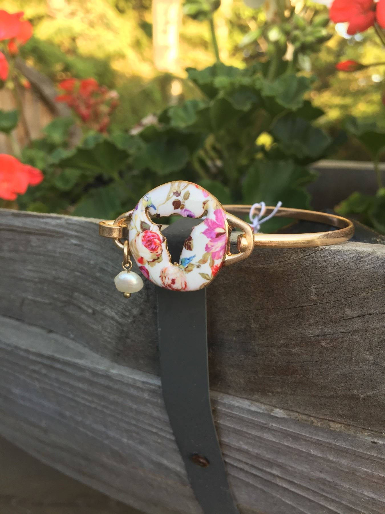 GOLD/CREAM FLORAL STEER HEAD BRACELET