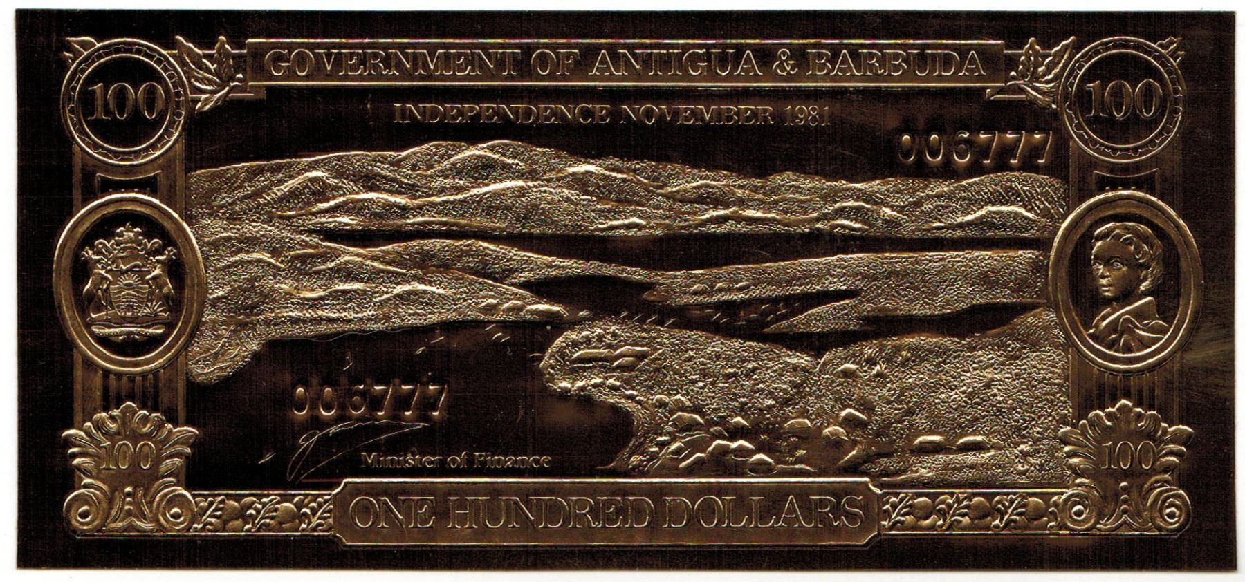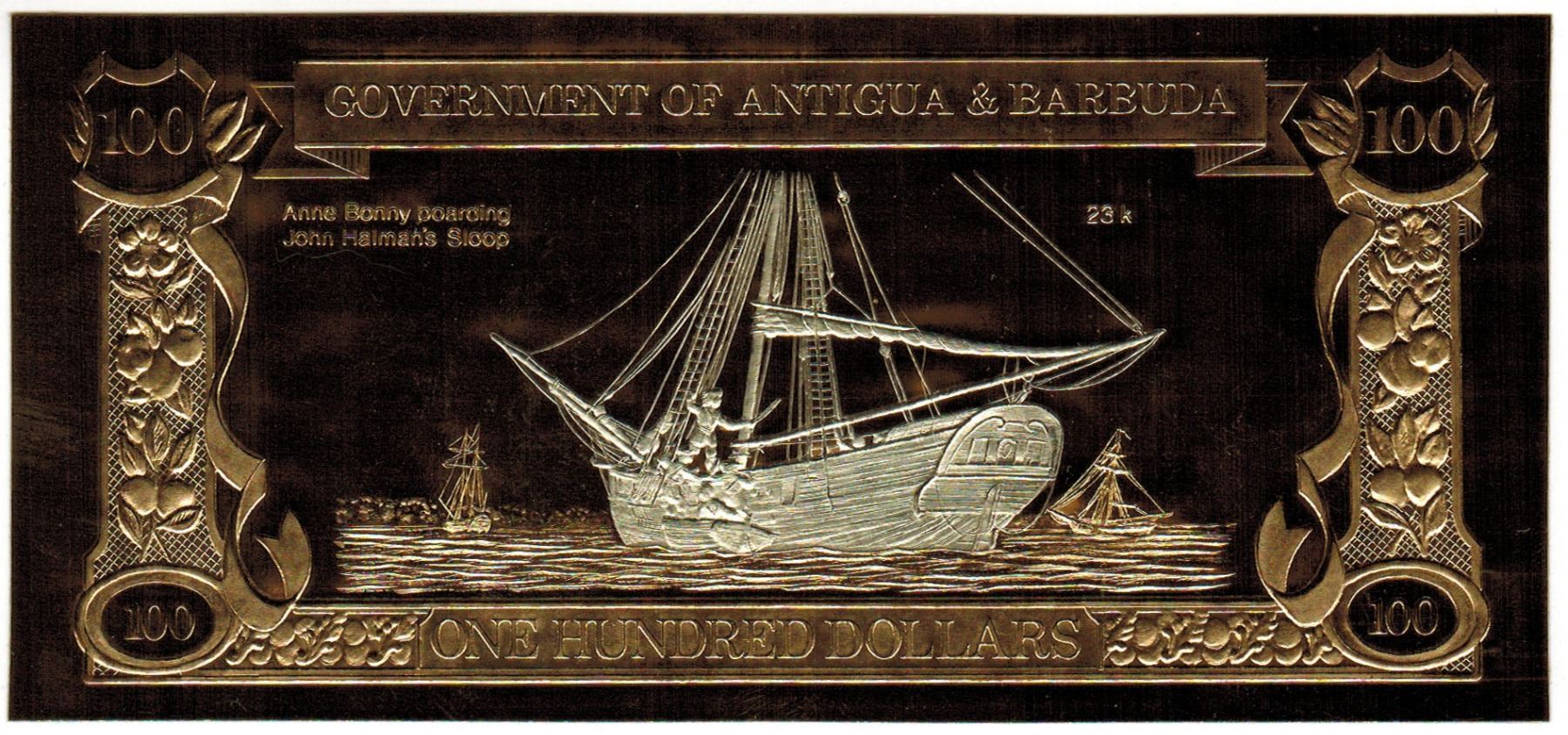 GOLD & SILVER BANK NOTE - ANTIGUA & BARBUDA - ANNE BONNY - 100 DOLLARS - LEGAL TENDER