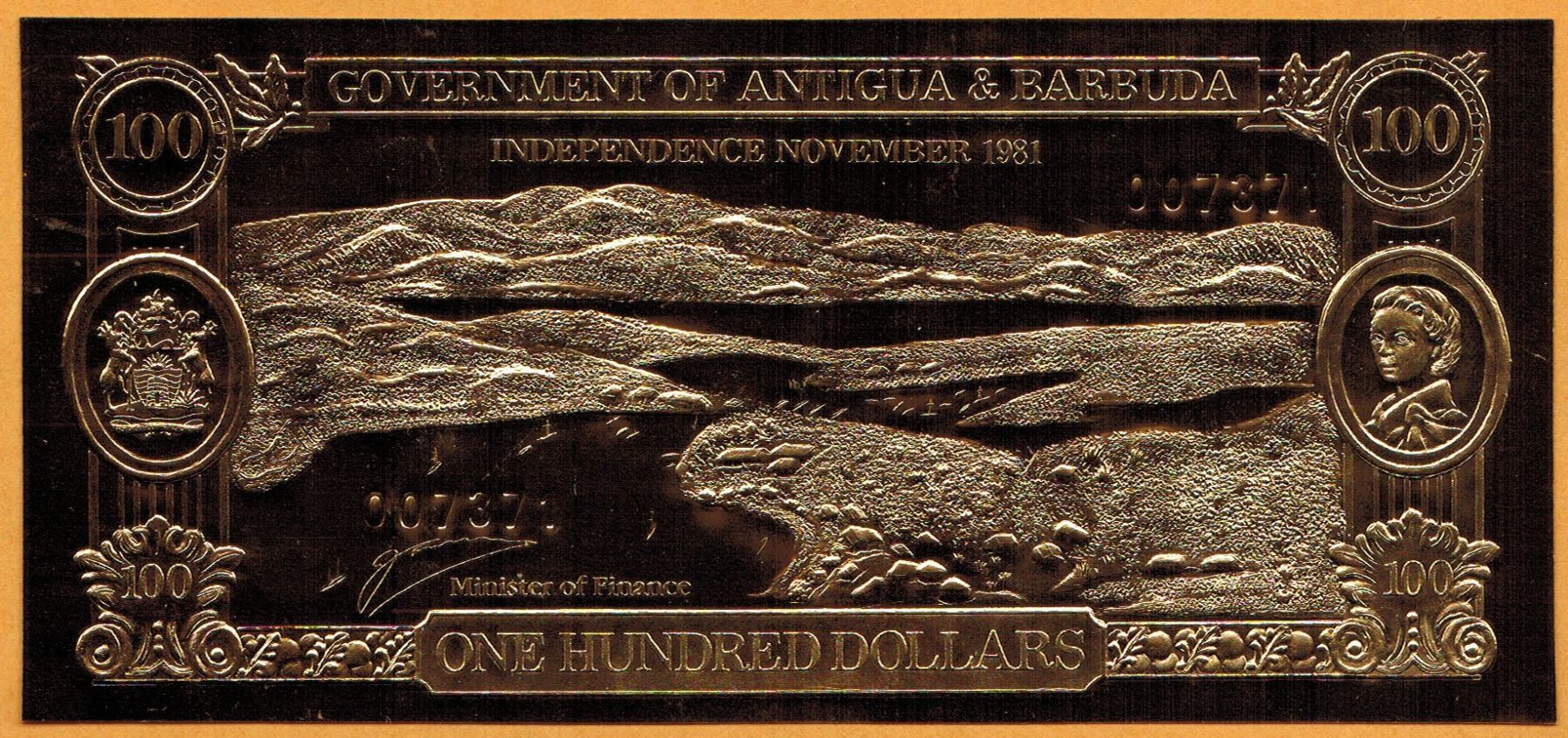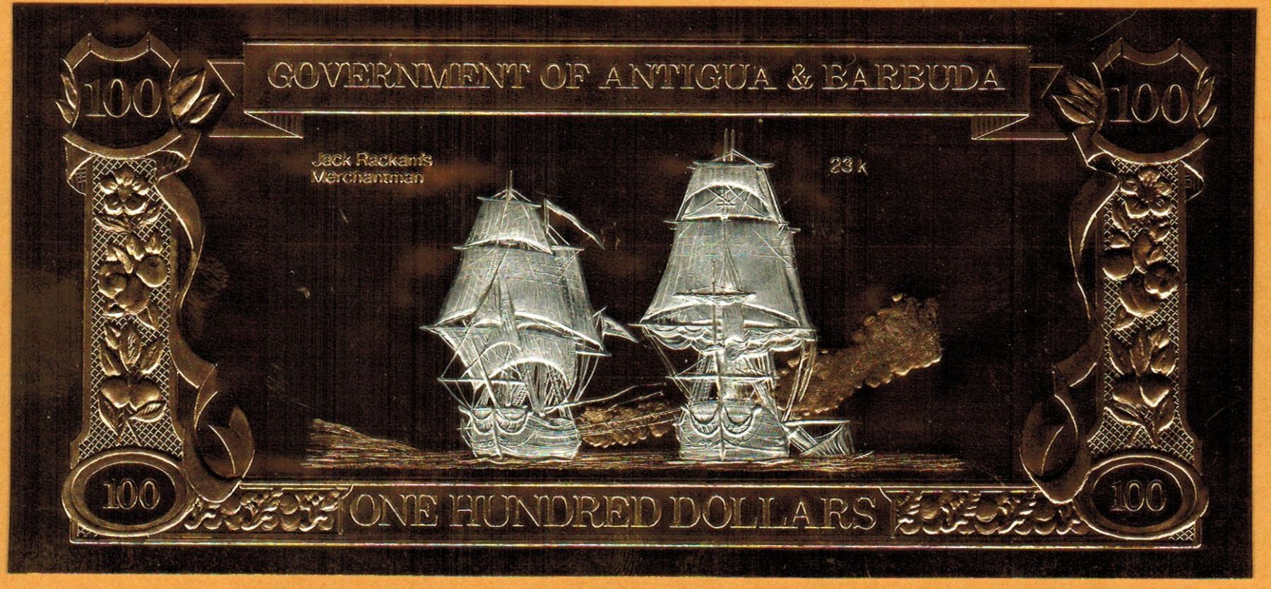 GOLD & SILVER BANK NOTE - ANTIGUA & BARBUDA - CALICO JACK / MERCHANTMAN - 100 DOLLARS - LEGAL TENDER