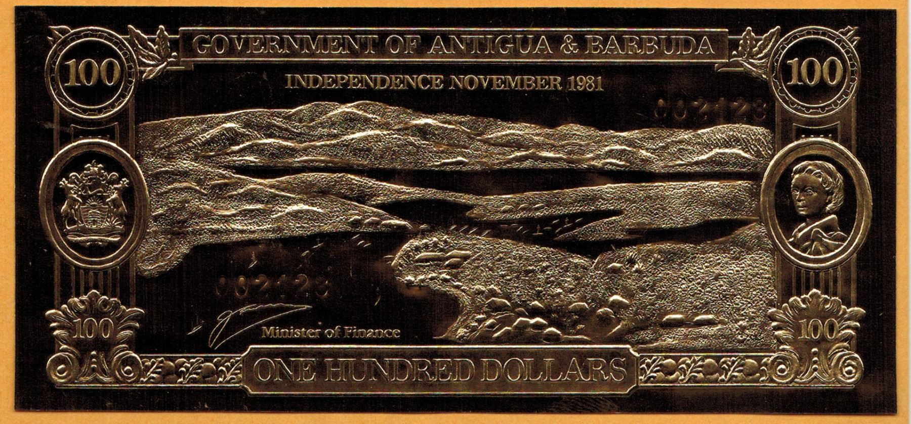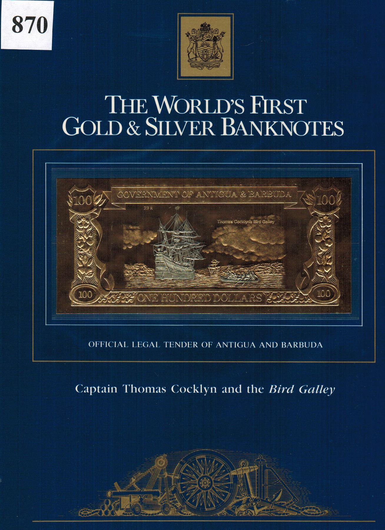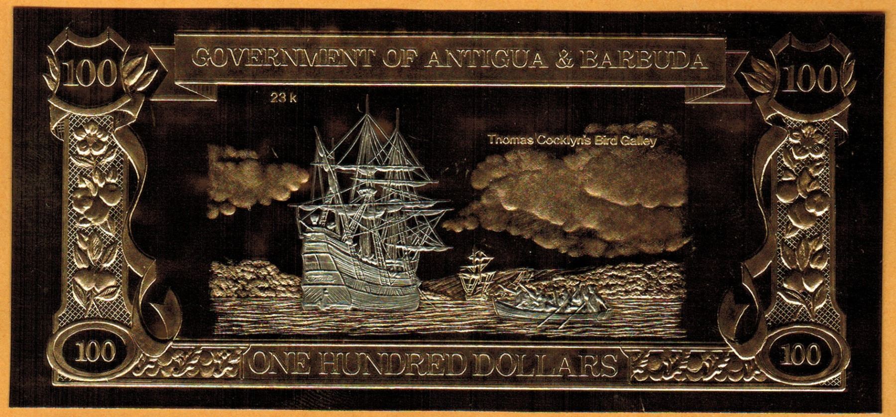 GOLD & SILVER BANK NOTE - ANTIGUA & BARBUDA - CAPT COCKLYN / BIRD GALLEY - 100 DOLLARS - LEGAL TENDER