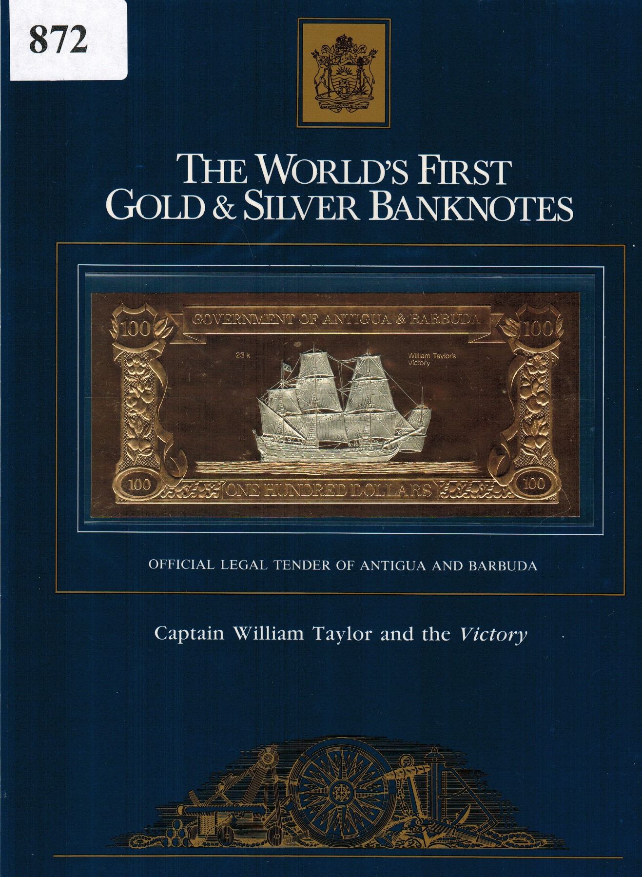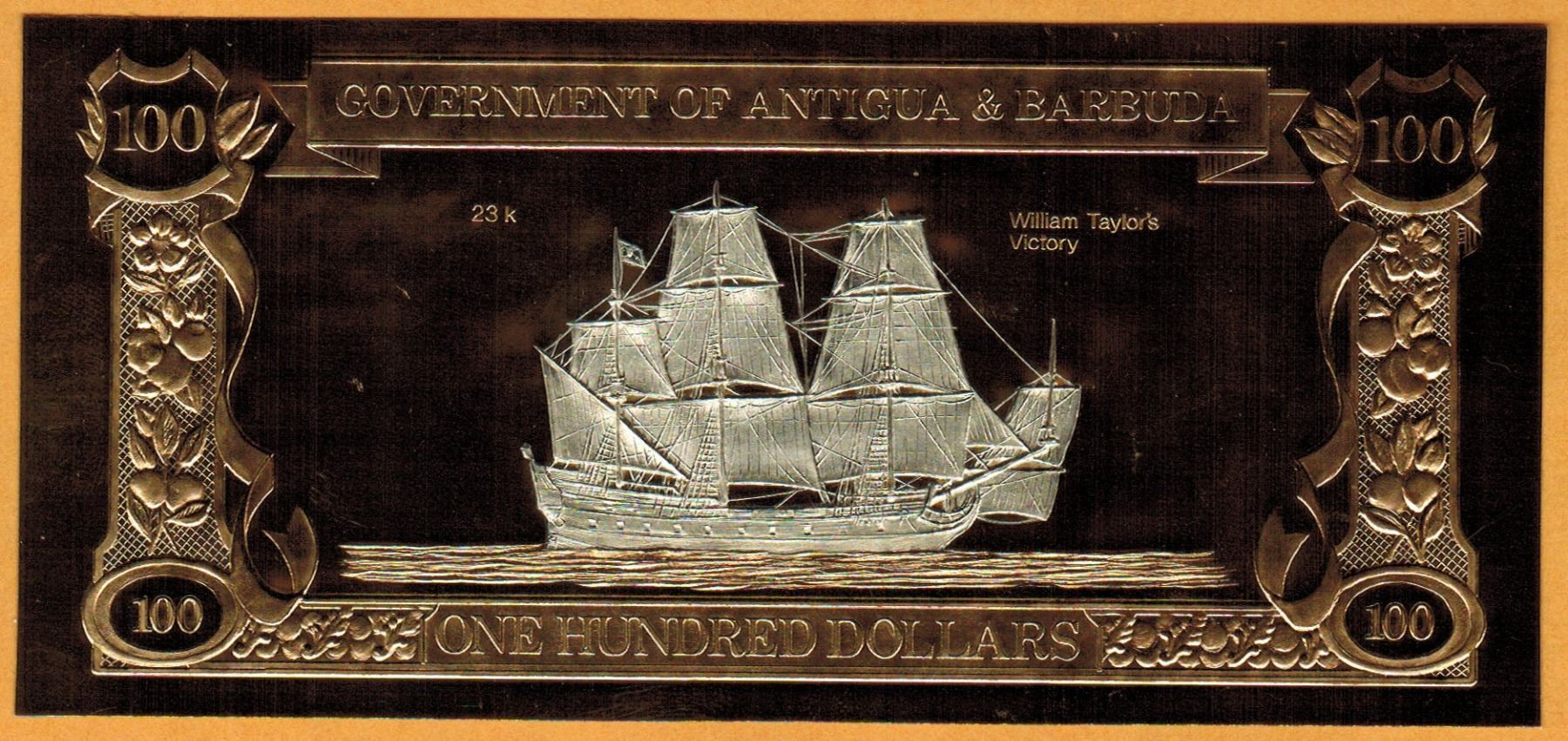 GOLD & SILVER BANK NOTE - ANTIGUA & BARBUDA - CAPT TAYLOR / VICTORY - 100 DOLLARS - LEGAL TENDER