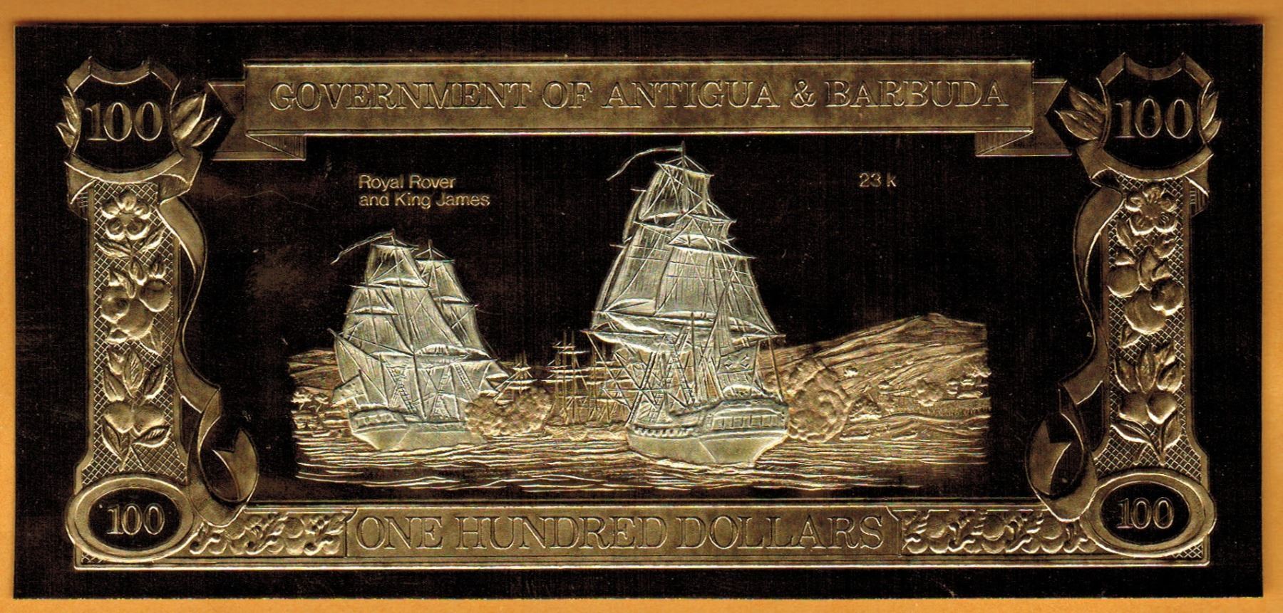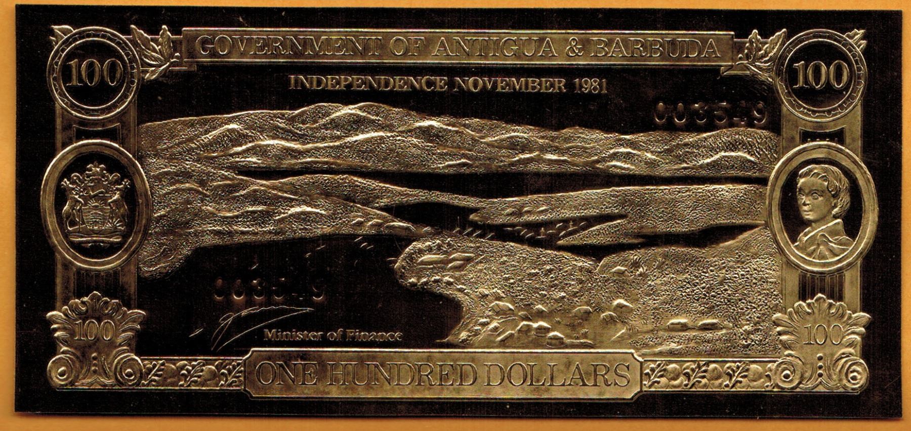 GOLD & SILVER BANK NOTE - ANTIGUA & BARBUDA - HOWELL DAVIS - 100 DOLLARS - LEGAL TENDER