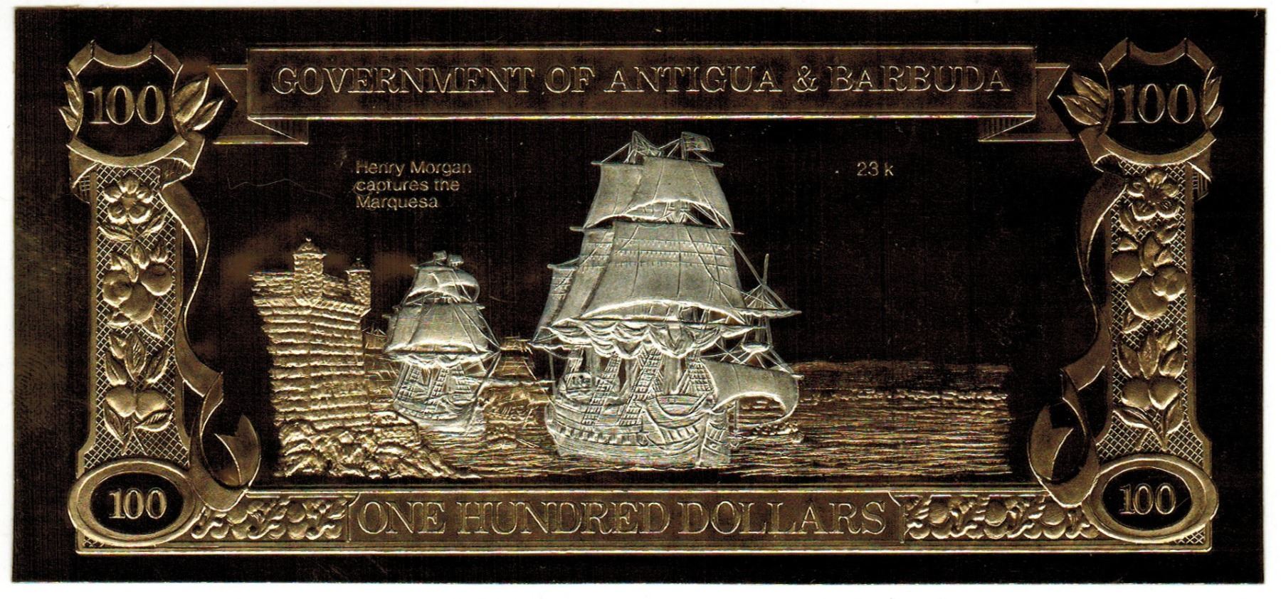 GOLD & SILVER BANK NOTE - ANTIGUA & BARBUDA - SIR HENRY MORGAN - 100 DOLLARS - LEGAL TENDER