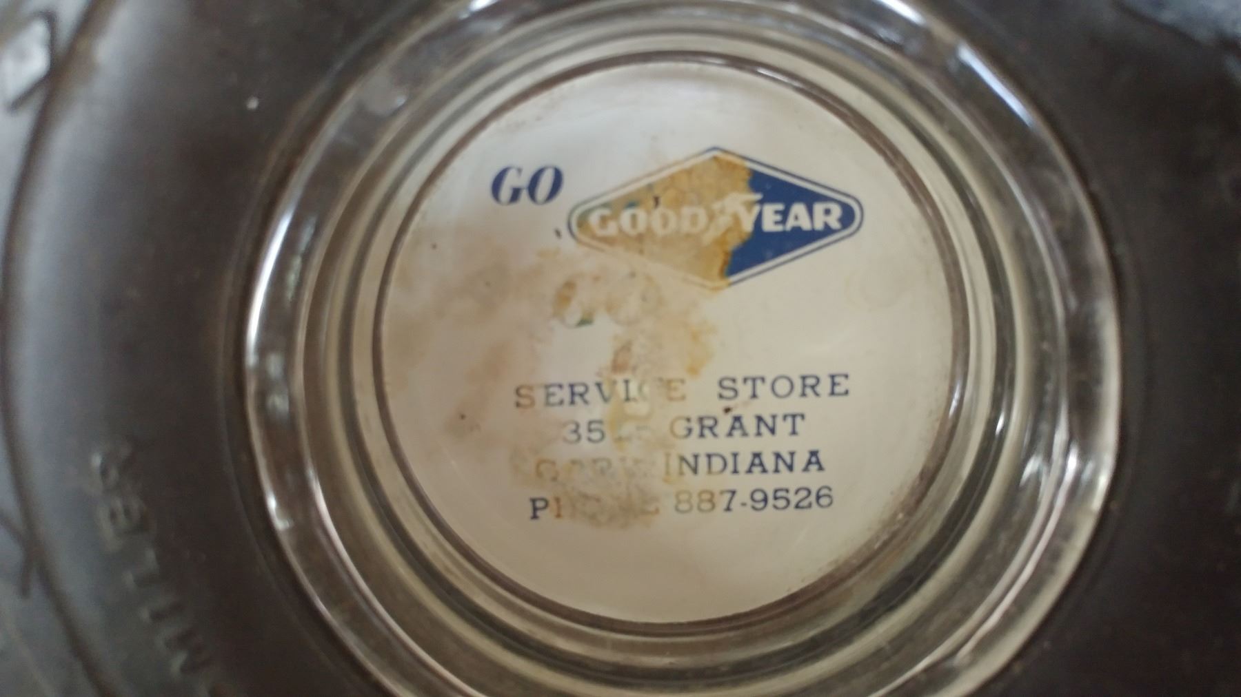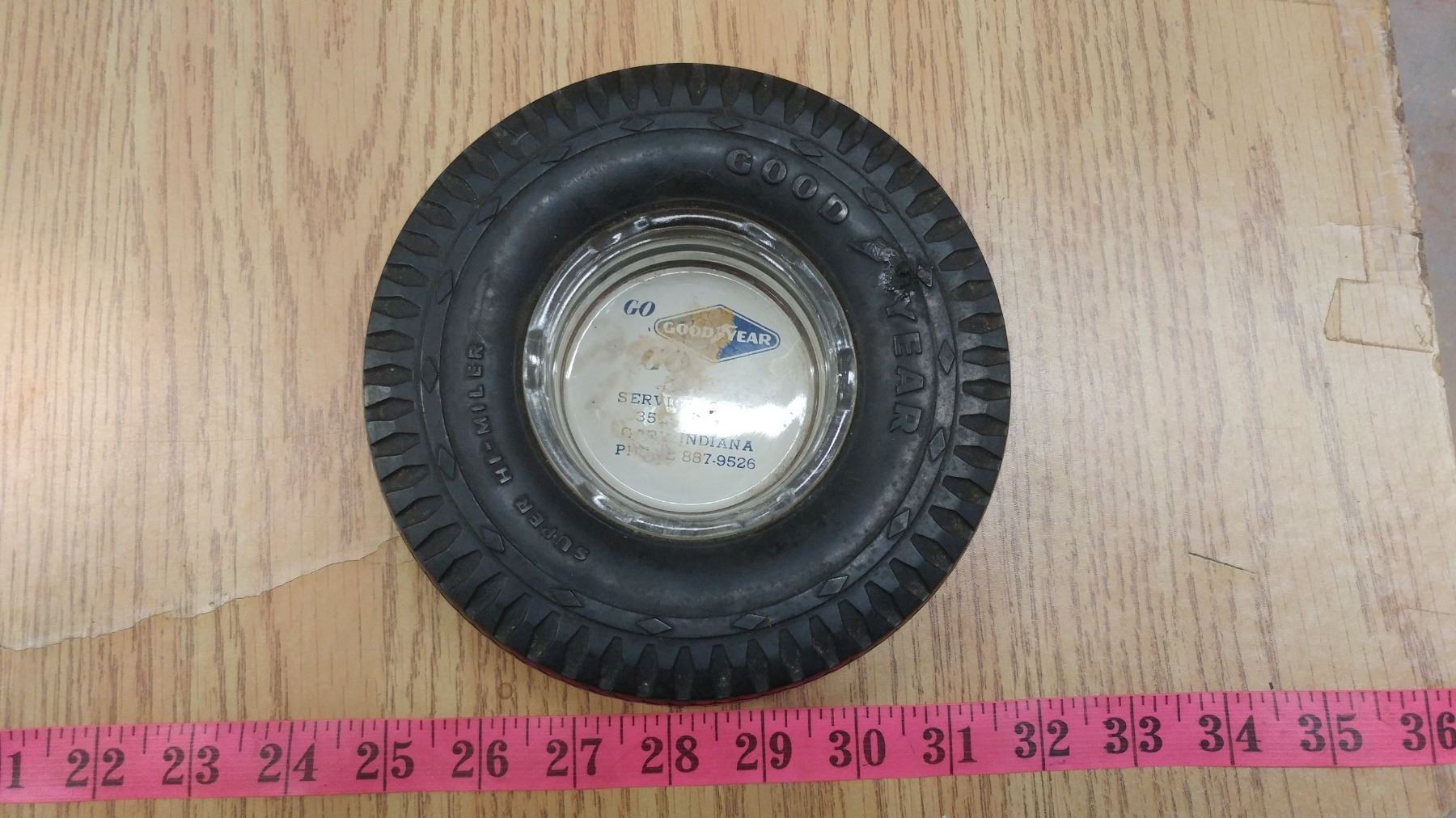 GOODYEAR TIRE ASHTRAY WITH GLASS INSERT