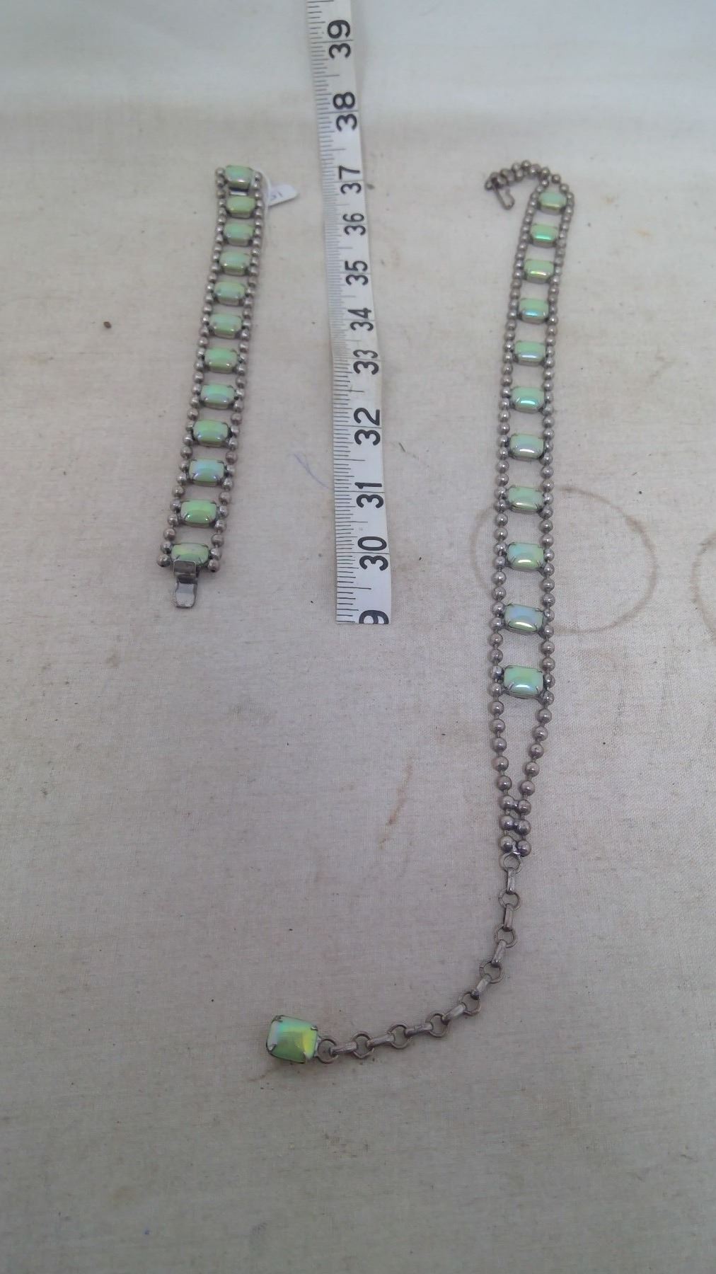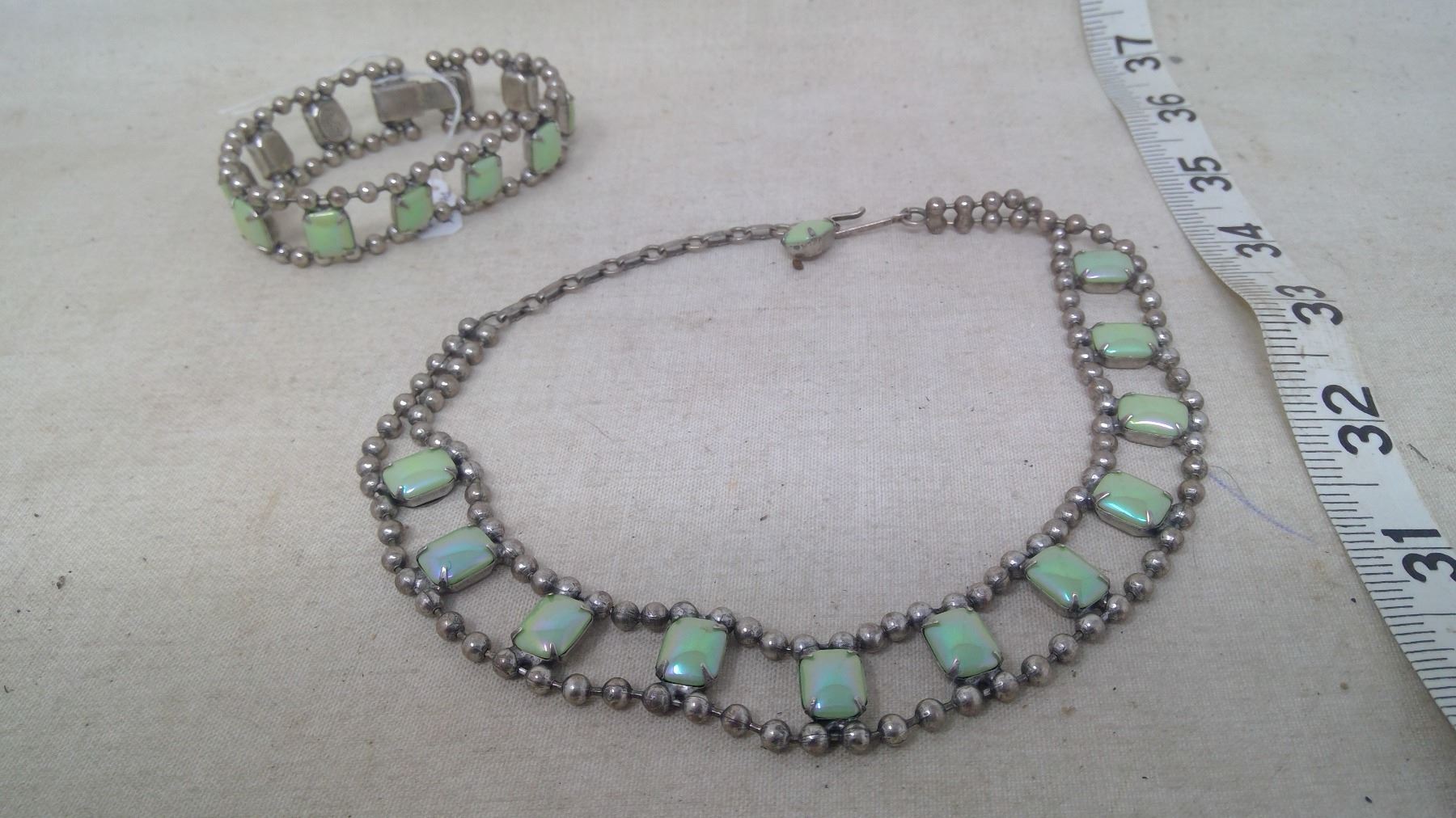 GREEN AND SILVERTONE DELUX NYC/ADAM NECKLACE AND BRACELET 1992