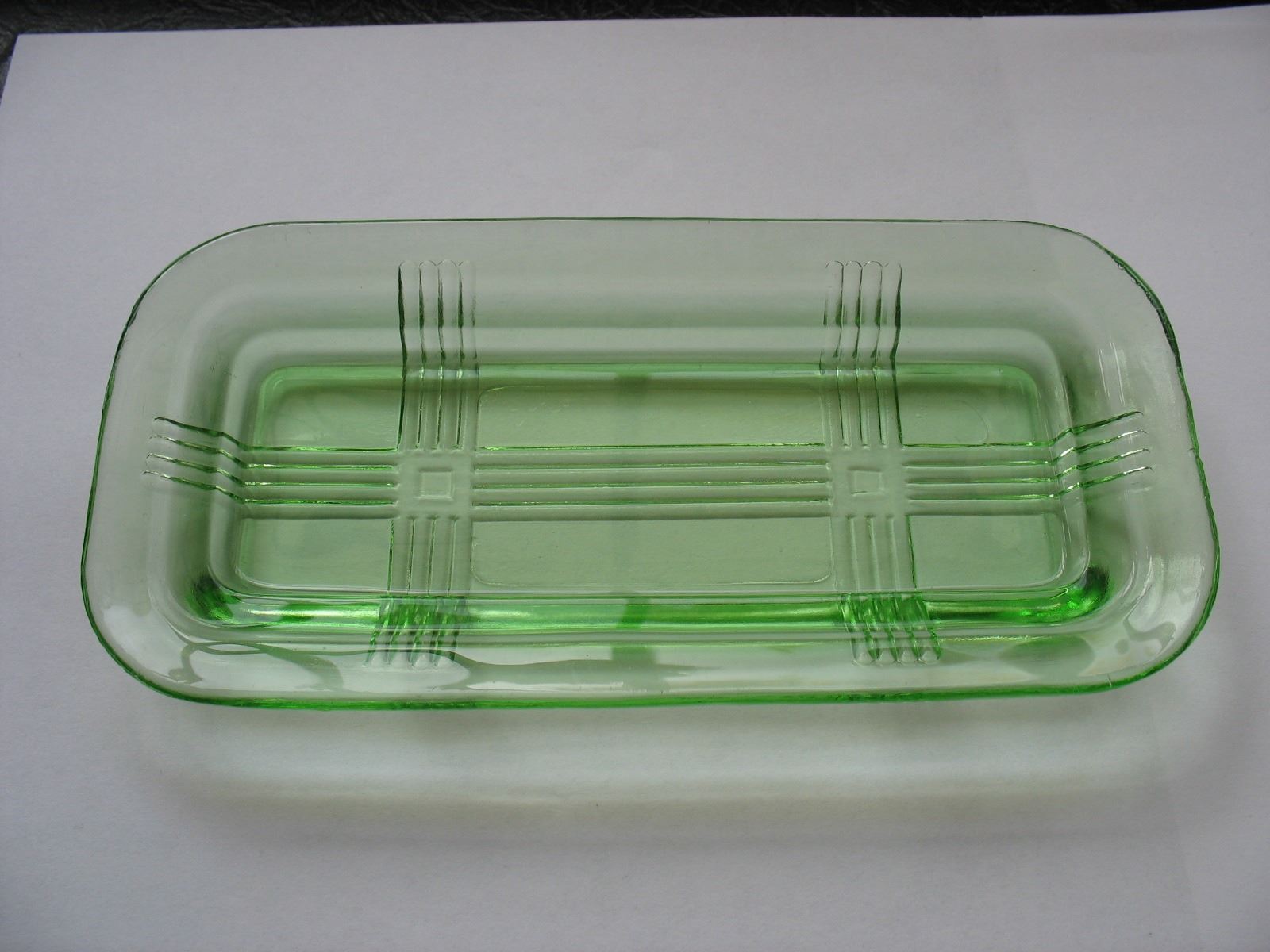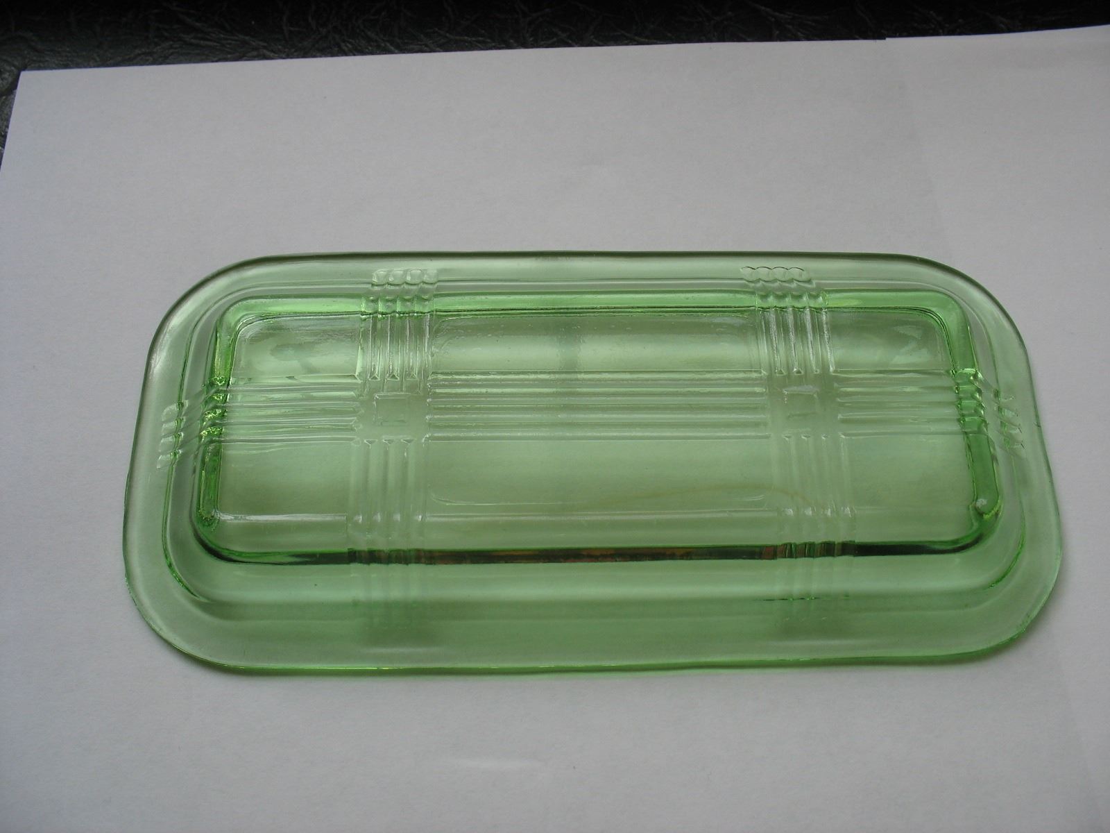 GREEN DEPRESSION GLASS 1/4 POUND BUTTER DISH with LID - CRISSCROSS PATTERN