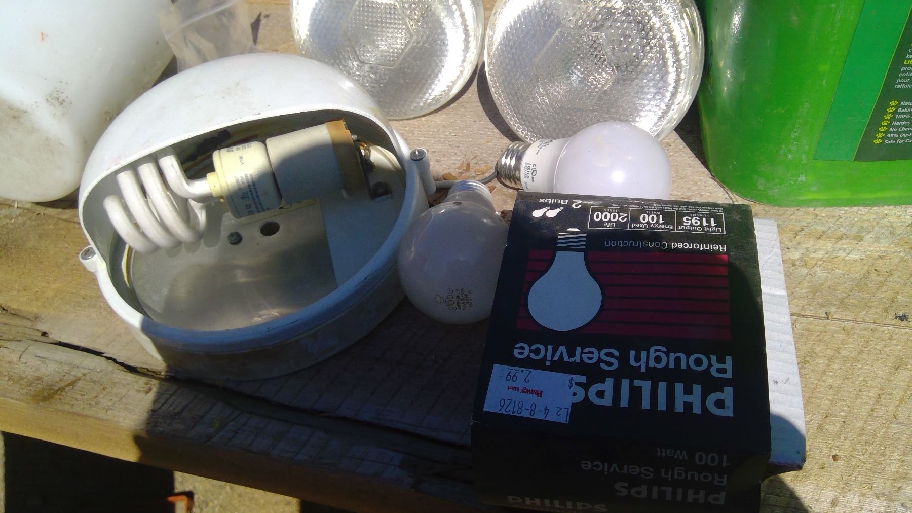 GREEN PAIL OUTSIDE LIGHTS AND BULBS