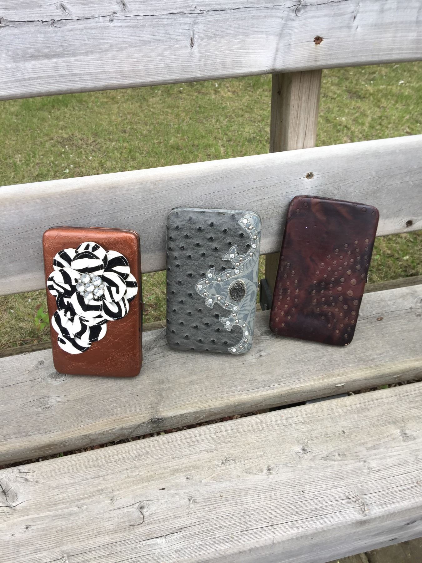 GROUP OF 3 DISCOUNT WALLETS/BROWN, GREY(DAMAGED),BRONZE