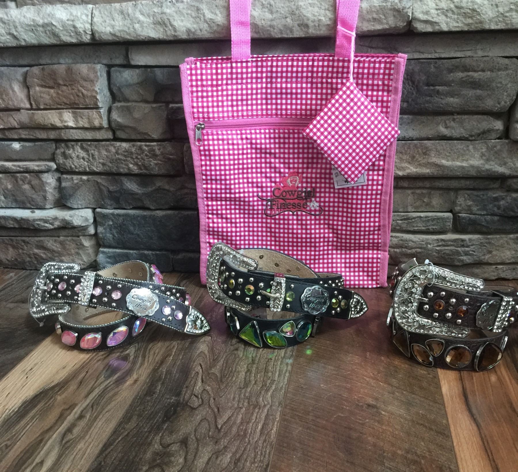 GROUP OF 3 WESTERN BLING BELTS PLUS A COWGIRL FINESS TOTE BAG*BELT MAY HAVE DEFECTS IN SOME STONES B