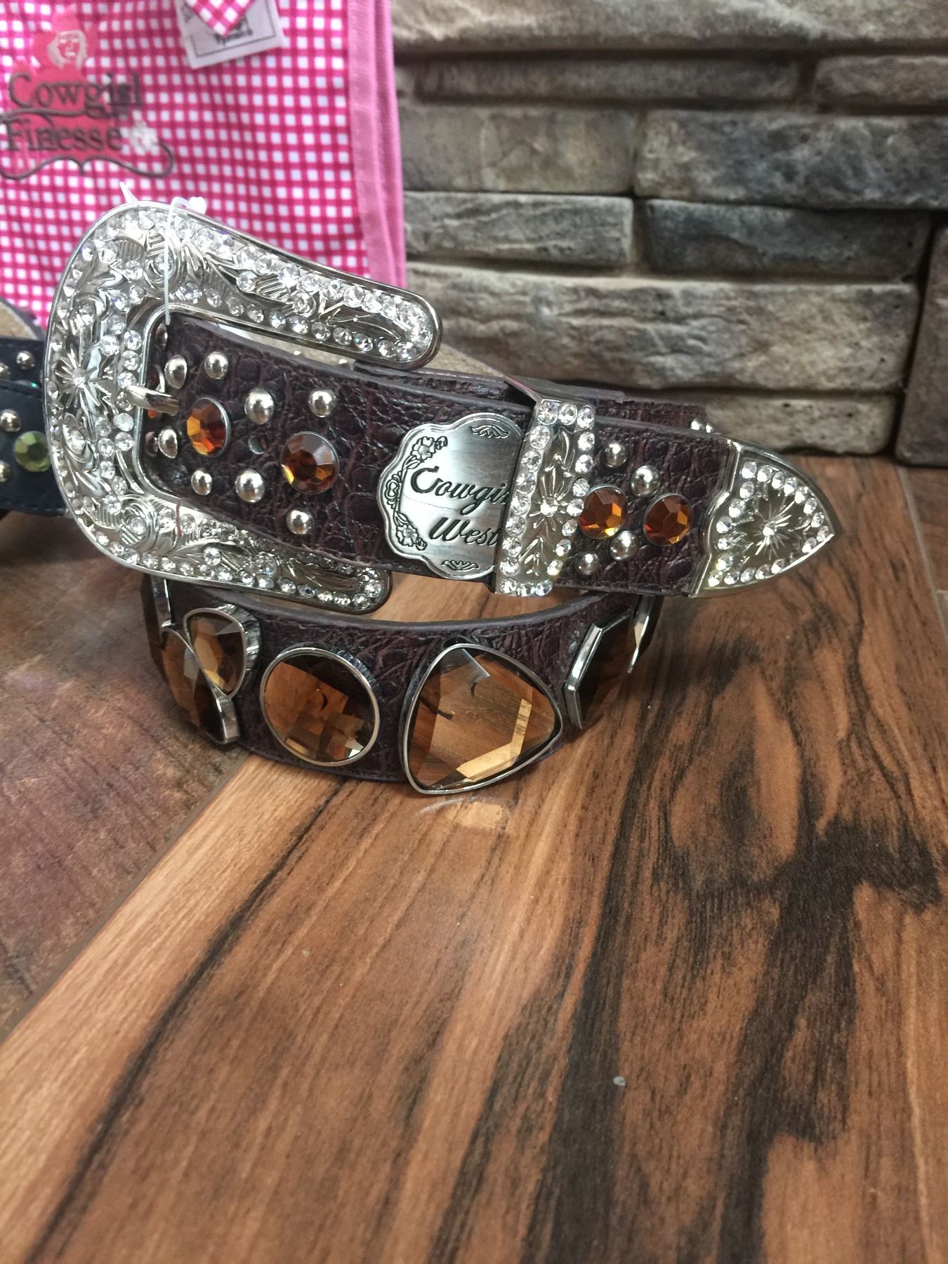 LEATHER WESTERN BLING BELTS. THESE ARE NEW BELTS THAT MAY HAVE SOME DEFECTS IN THE STONES.