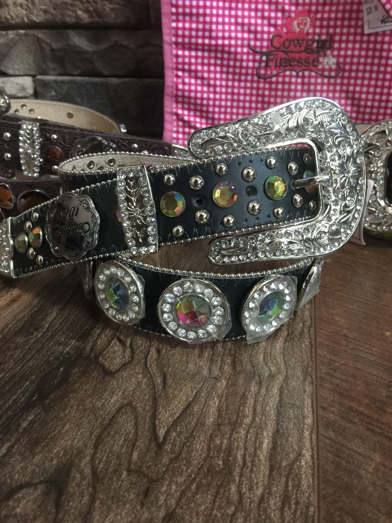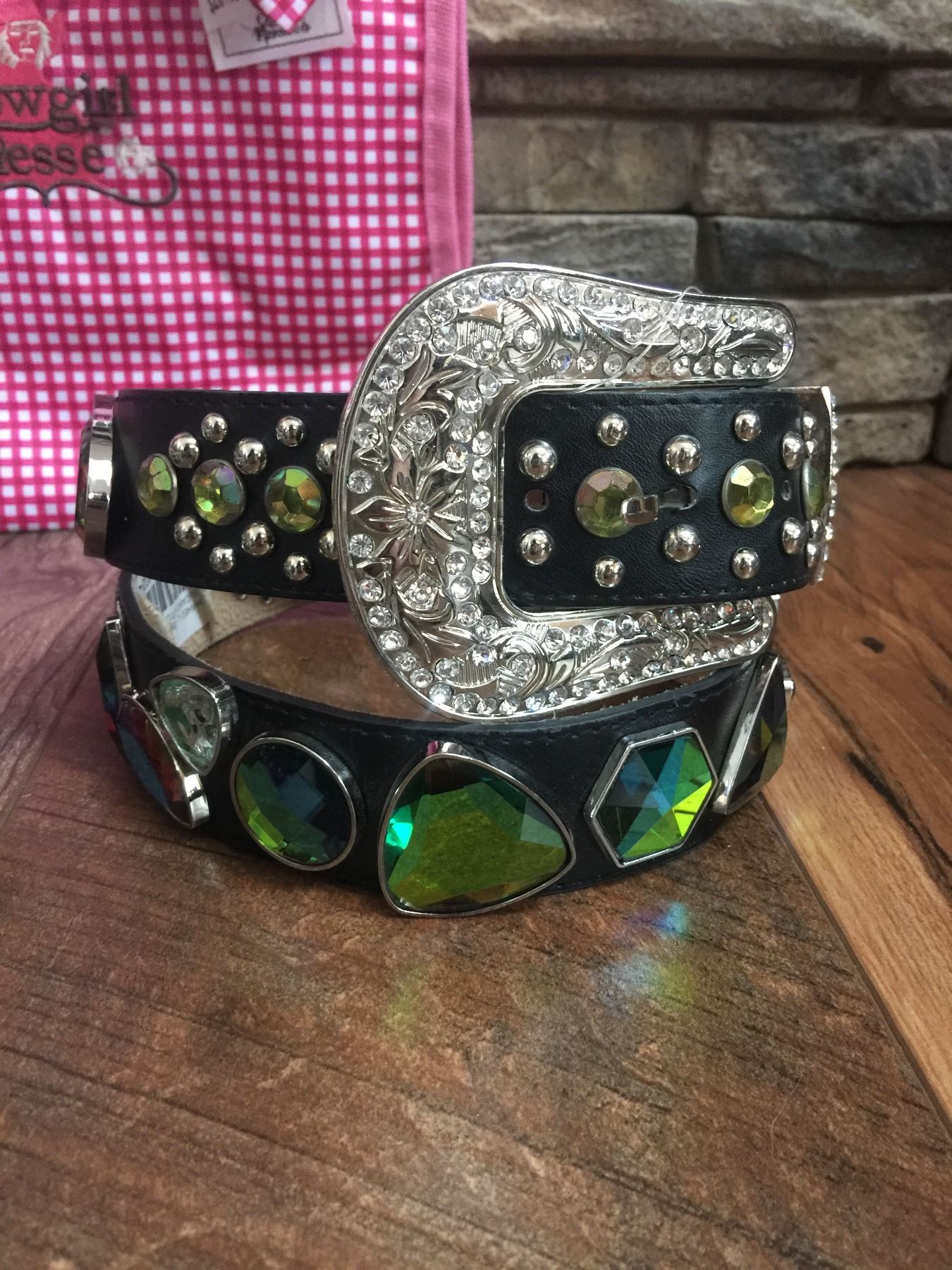 LEATHER WESTERN BLING BELTS. THESE ARE NEW BELTS THAT MAY HAVE SOME DEFECTS IN THE STONES.