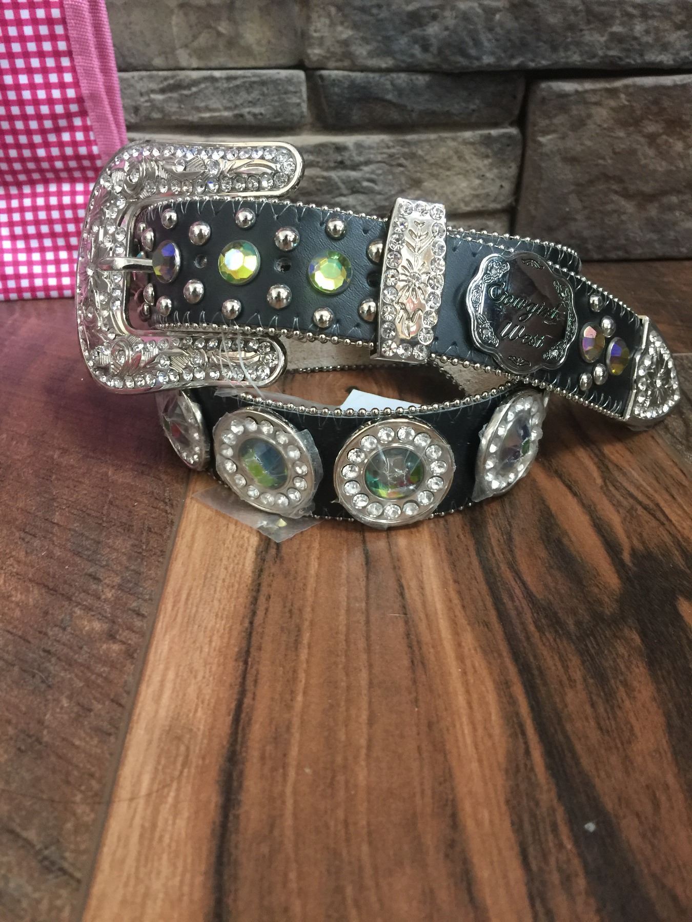 LEATHER WESTERN BLING BELTS. THESE ARE NEW BELTS THAT MAY HAVE SOME DEFECTS IN THE STONES.