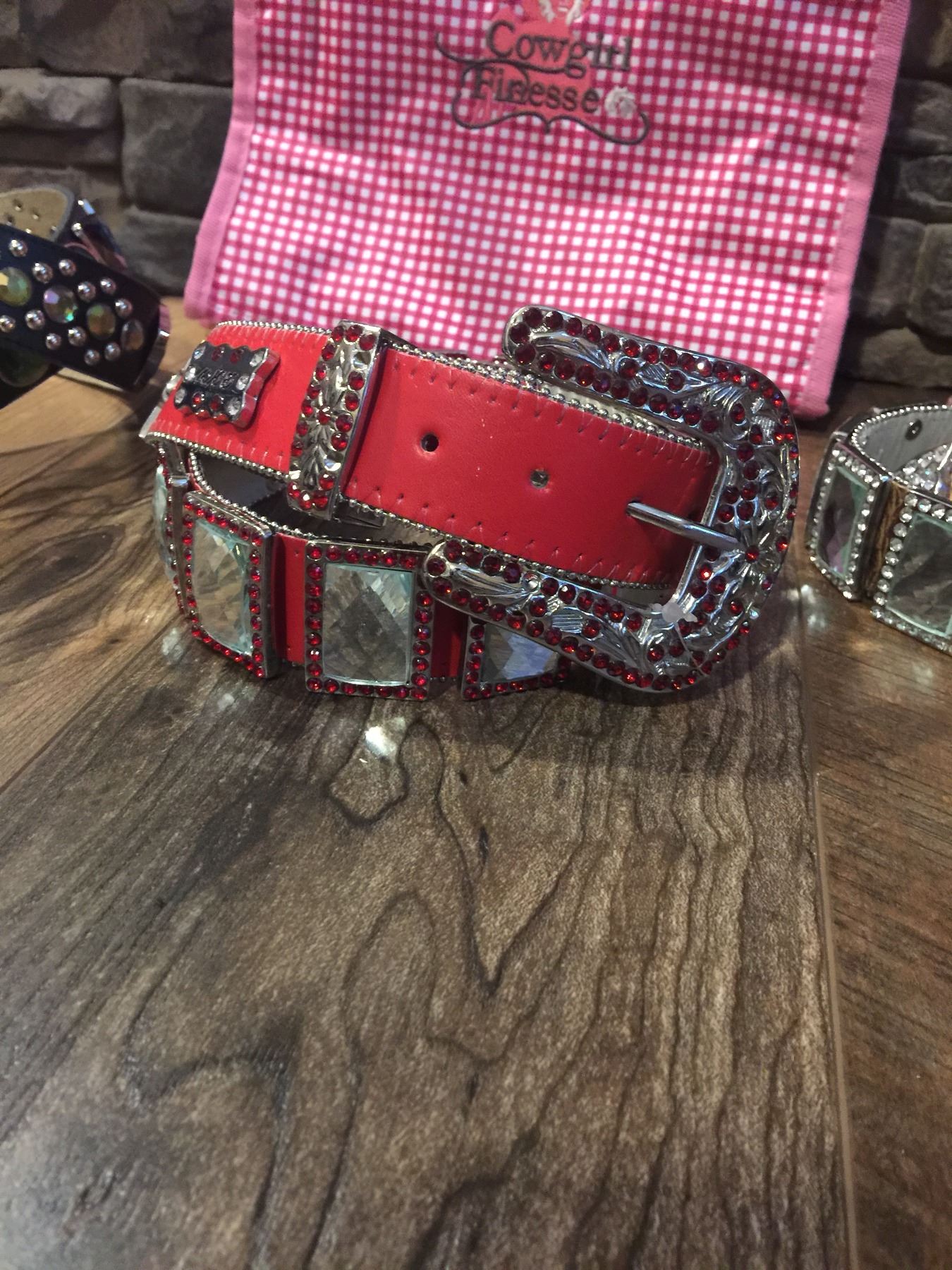 LEATHER WESTERN BLING BELTS. THESE ARE NEW BELTS THAT MAY HAVE SOME DEFECTS IN THE STONES.